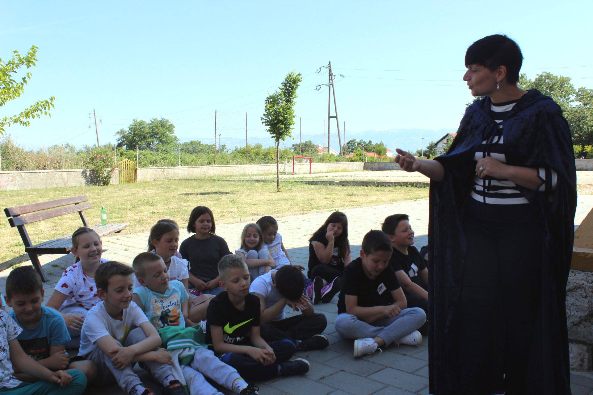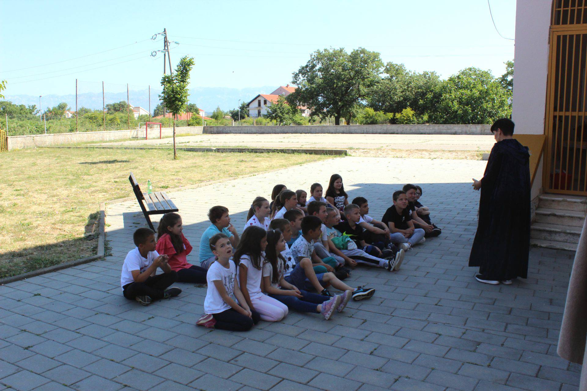 Radionica Bajkoplov održana je u Područnoj školi Murvica, a sudjelovali su učenici 1. i 2. razreda. Knjižničarka je pripovijedala bajku Kraljevna na zrnu graška. Nakon toga uslijedile su igre pogađanja te kviz o bajkama, a druženje smo završili čitanjem slikovnice Vuk koji je zalutao u zemlju bajki. Zahvaljujemo profesorici Marijani Vukić Perović iz Škole primijenjene umjetnosti i dizajna Zadar koja je sašila plašt za pripovijedanje.