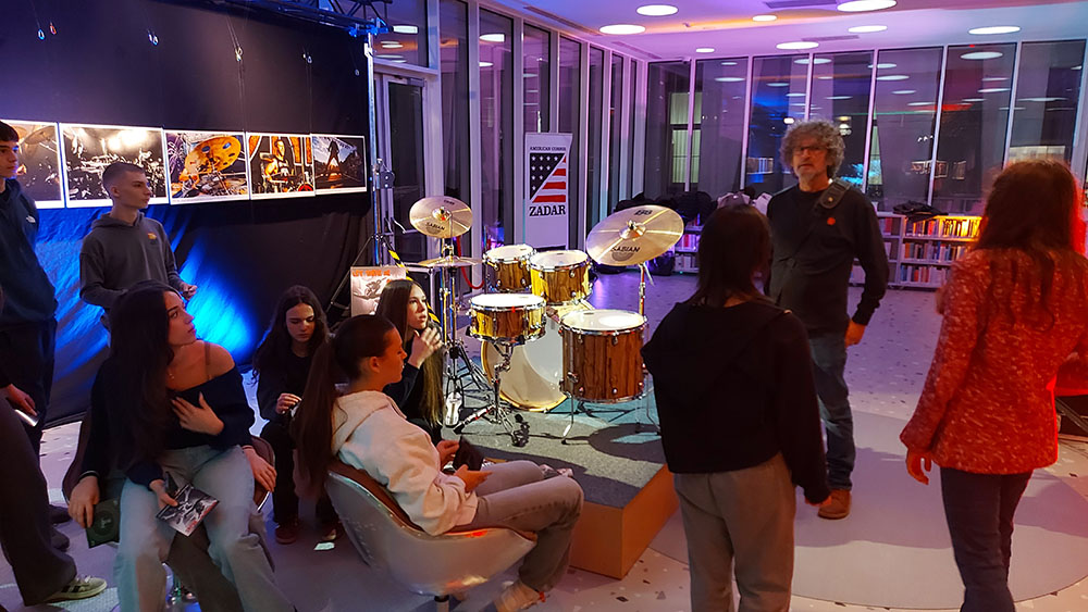The guest of the workshop for high school students is music teacher and drummer Gloria Krizman. In addition to the workshop, a visit to the exhibition "Let there be drums" and a meeting with the author Stipe Surać at the Library were also organized.