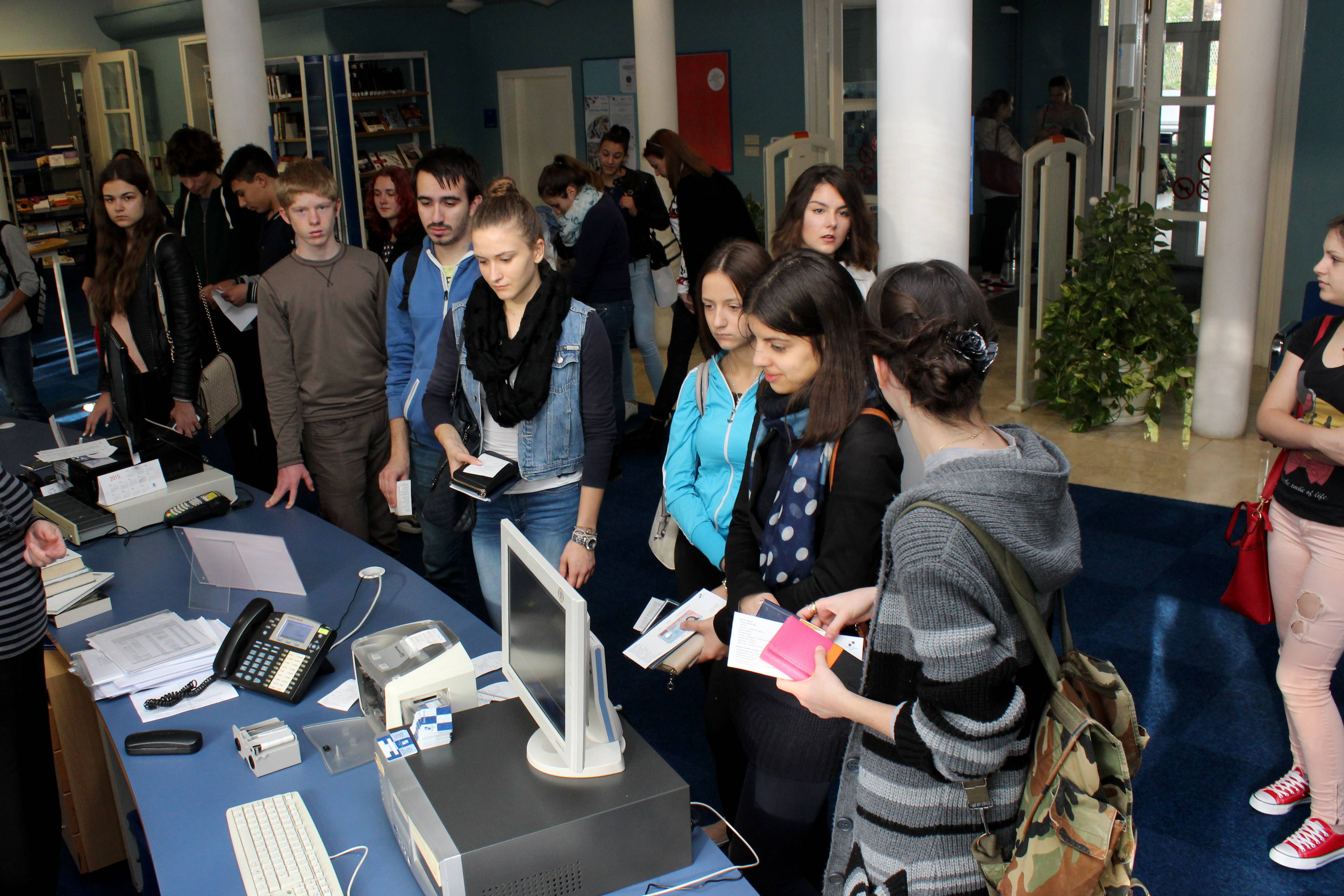 Gužva prilikom besplatnih upisa učenika i studenata povodom Dana hrvatskih knjižnica 2015. Srijeda, Studeni 11, 2015 - 00:00Kategorija: AkcijaLokacija: Središnja knjižnica Tagovi: Dan hrvatskih knjižnica 2015.