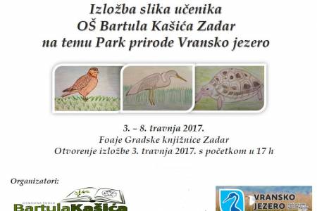 Izložba učeničkih radova koja je proizašla iz projekta koji OŠ Bartula Kašića Zadar provodi s Parkom prirode Vransko jezero pod nazivom Škola prijatelj parka prirode Vransko jezero.