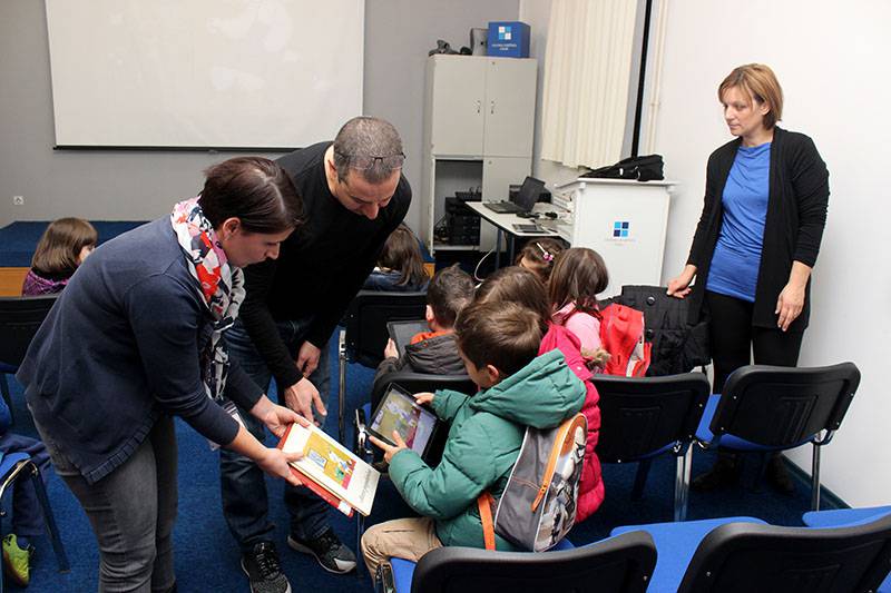 U sklopu Tjedna s Macom Papučaricom posjetila su nas djeca DV Jazine, kojoj smo pročitali priču Maca Papučarica, a potom održali iPad radionicu. Bila je to idealna prilika da upoznamo djecu s novim tehnologijama.
