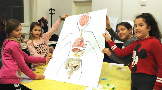 Fotografije s drugog dijela radionice Mali biolozi pod temom ,,ljudsko tijelo". Radionicu je vodila prof. Anita Mustać.