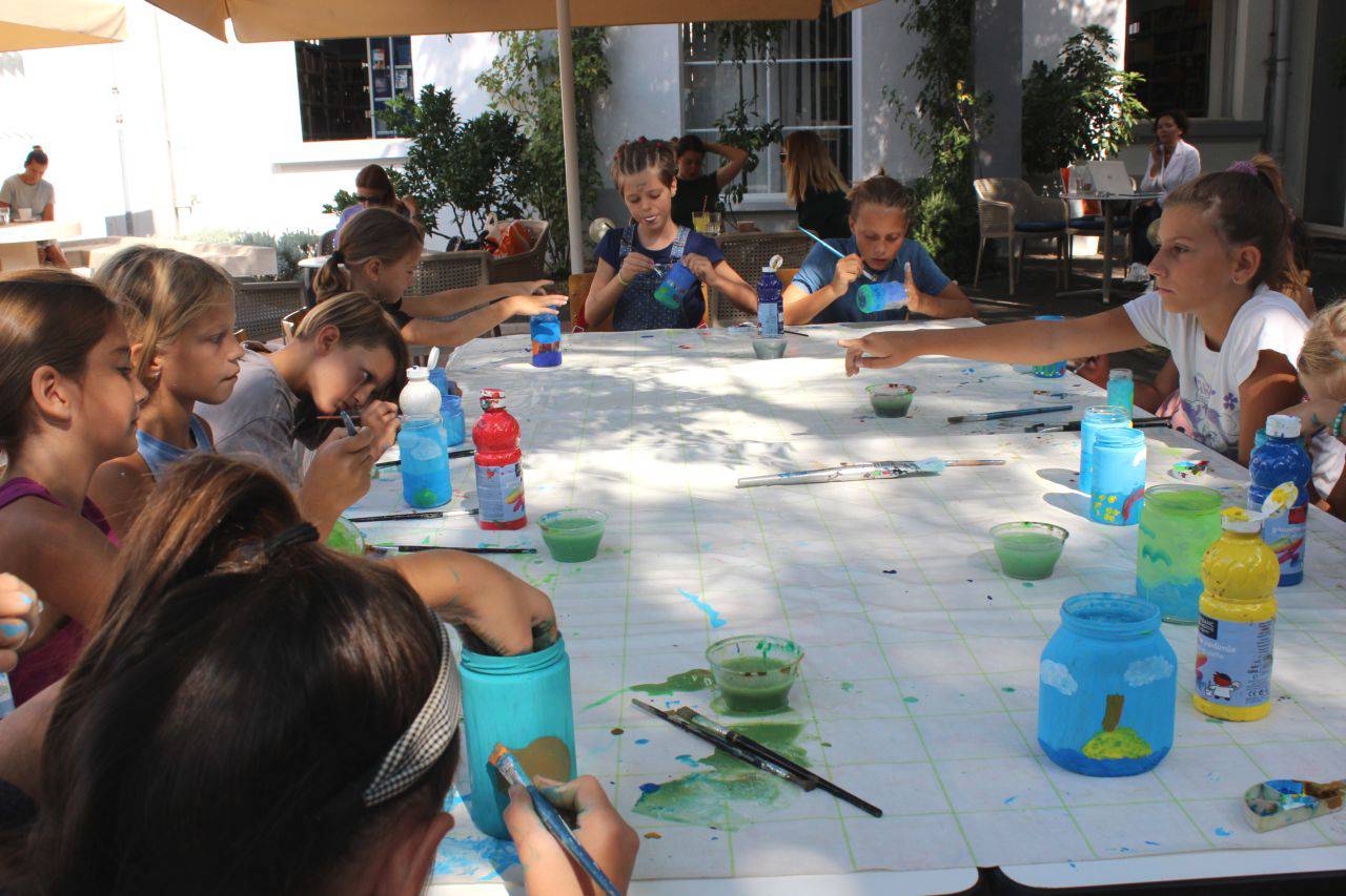 U posljednjoj radionici ovog ljeta djeca su izrađivala mozaik od staklenki. Likovnu radionicu za djecu osnovnoškolske dobi vodi akademski grafičar Dino Colić.