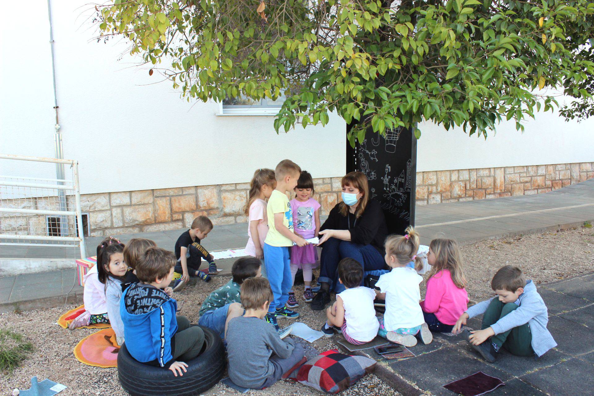 Posjetili smo DV Radost, PO Višnjik. Knjižničarka se družila s djecom i tetama iz skupine Trešnjice, uz priče, zagonetke i kviz-pitalice. Na dar smo dobili vrećicu koju su sami oslikali prema motivima iz priča i nacrtali su tetu Dajanu kojoj su poželjeli da ode na plažu.