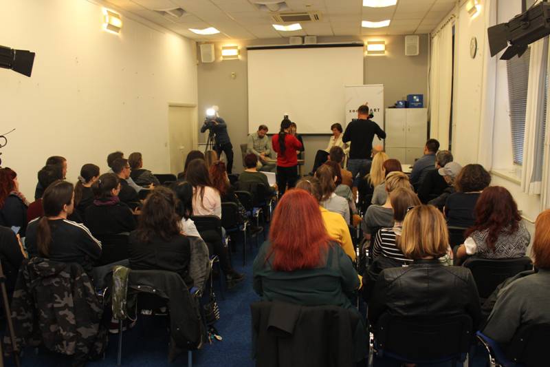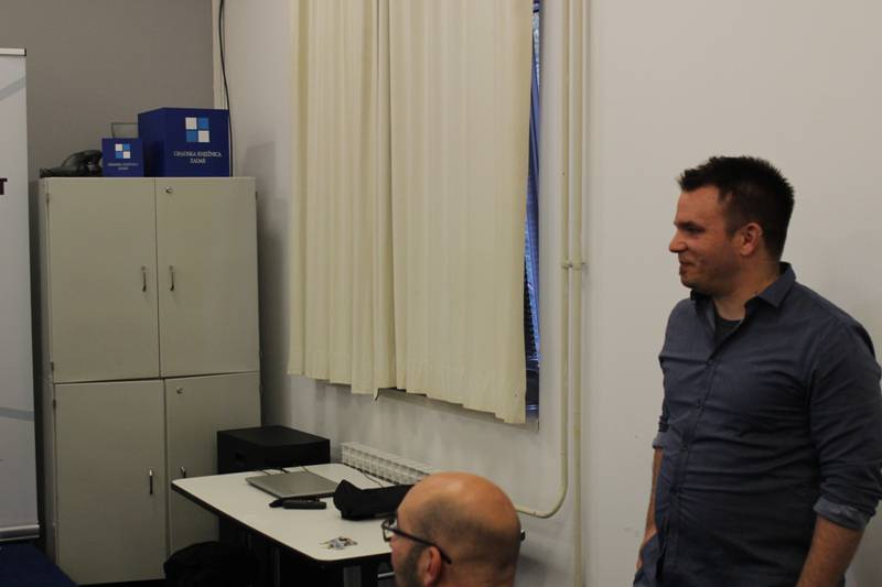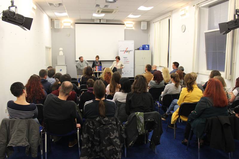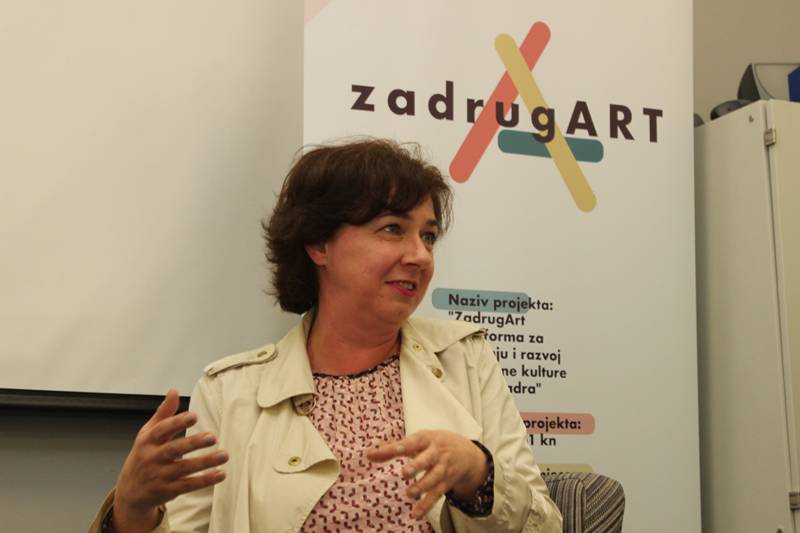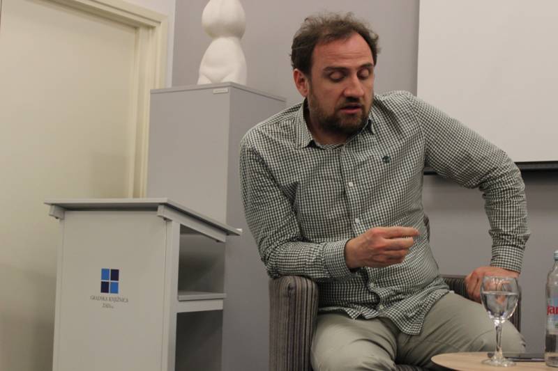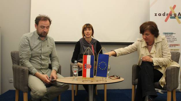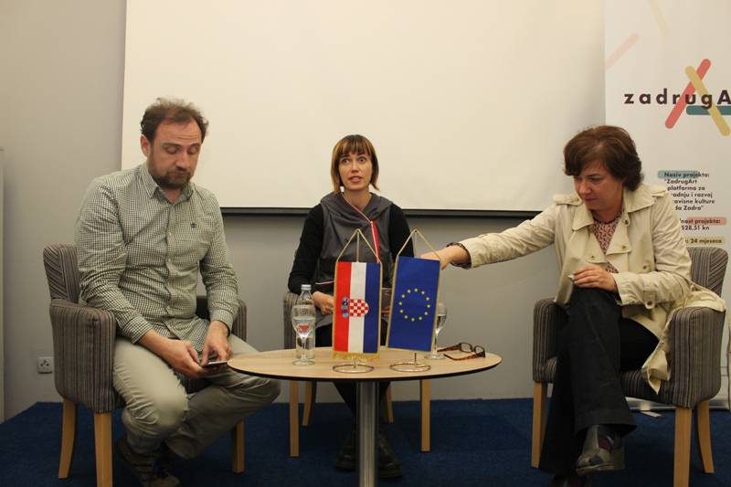 Fotografije sa sinoćnje tribine Osuđeni na suradnju u sklopu projekta ZadrugArt na kojoj su gostovali Teodor Celakoski iz Zagreba i Tamara Visković iz Splita, uz moderiranje Maje Milin.