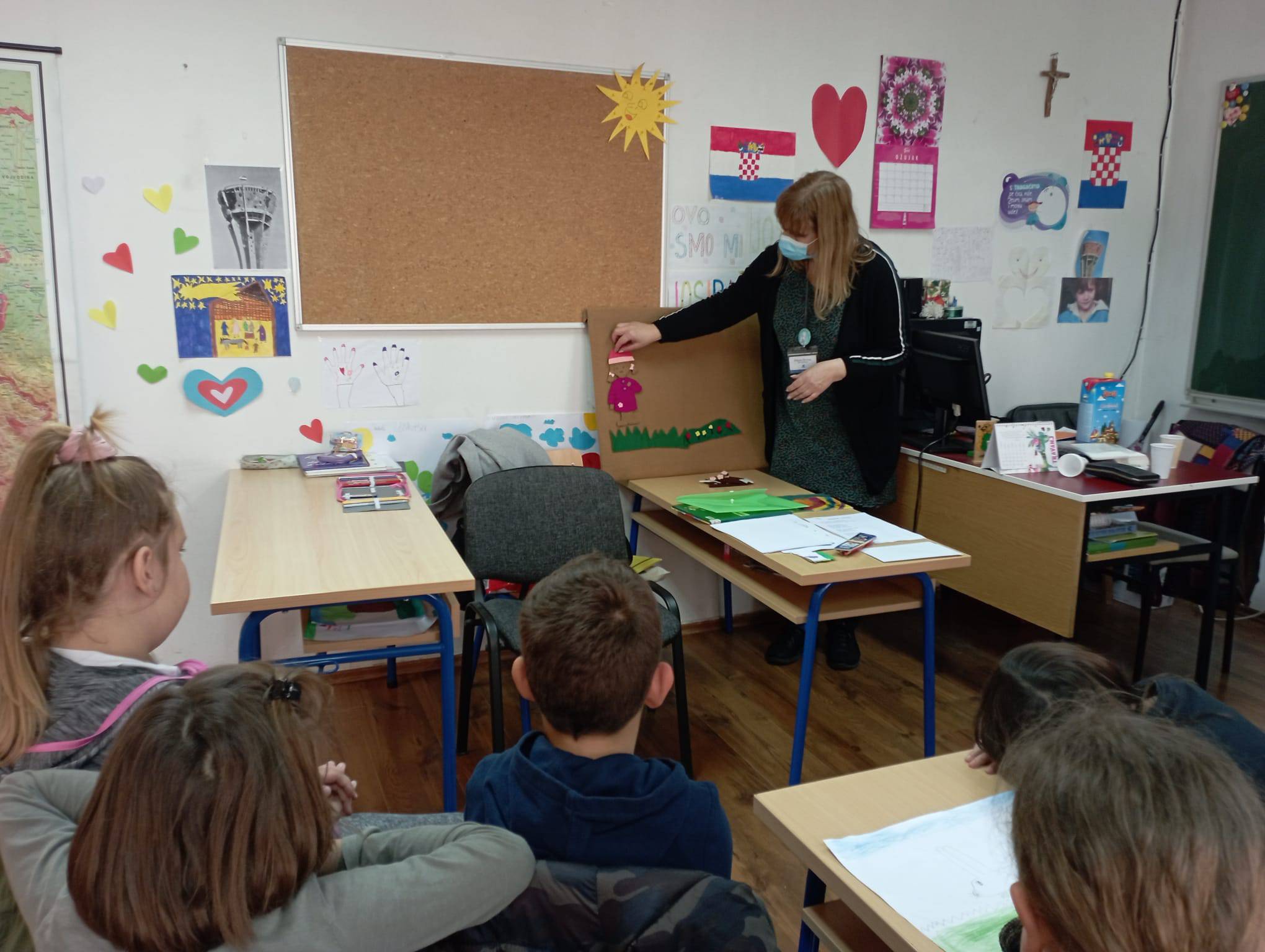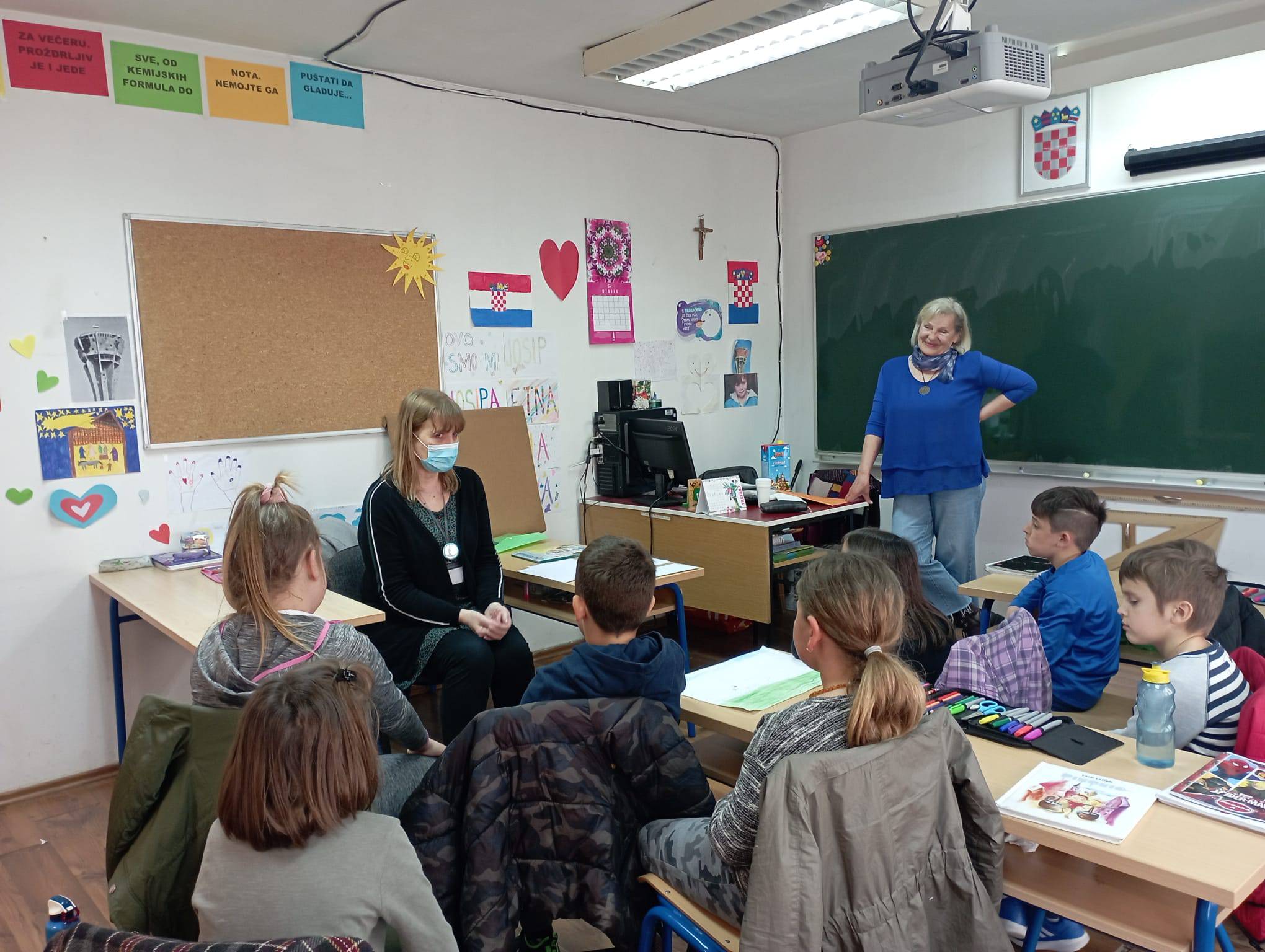 Posjetili smo stajalište bibliobusa u Karinu Gornjem. Učenici 1. i 2. razreda poslušali su priču Uljuđeni vuk u kojoj je čak i vuk naučio čitati. Sudjelovali su u pričanju priča na filcu i s velikim žarom odigrali animacijske igre za poticanje čitanje.