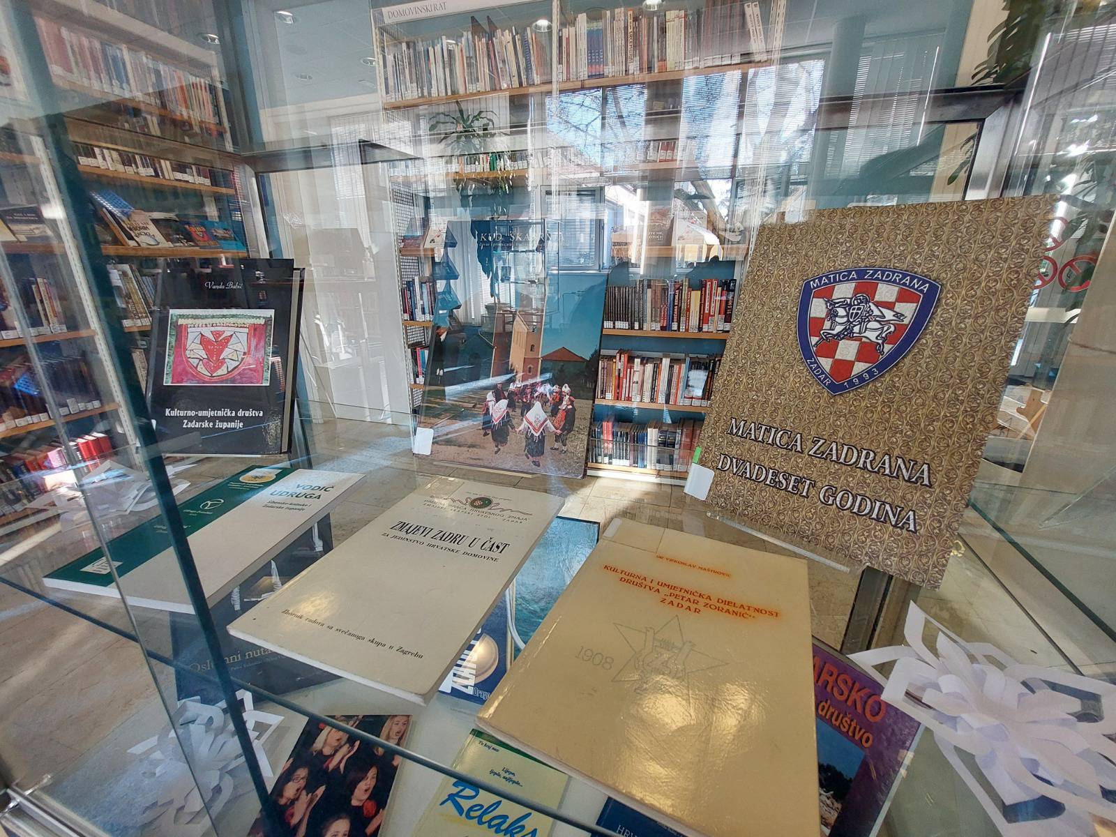 Predstavljamo vam - Društva, udruge i organizacije Zadra i Županije. U ulaznom dijelu Knjižnice, izloženi su naslovi iz fonda Zavičajne zbirke Gradske knjižnice Zadar.