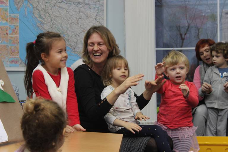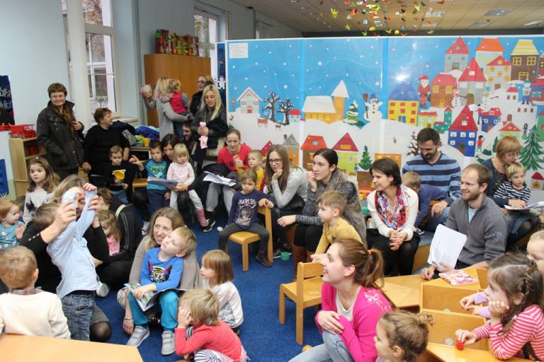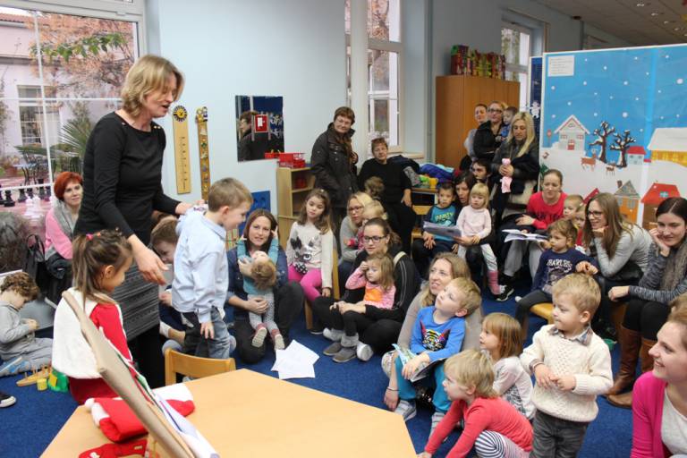 Još smo se jednom družili na Dječjem odjelu uz pjesmice za najmlađe i blagdansko ozračje. Pjesmice uz pokret povoljno utječu na djetetov govor, pamćenje, koncentraciju i još mnoge druge segmente razvoja, a na Dječjem odjelu uvijek ih pjevamo s veseljem. Kao uvod u pjesmice knjižničarka je pričala priče, a Pjesmice uz pokret vodila je defektologinja Dijana Miočić uz pomoć Marije Ivanković koja ju je pratila na gitari.