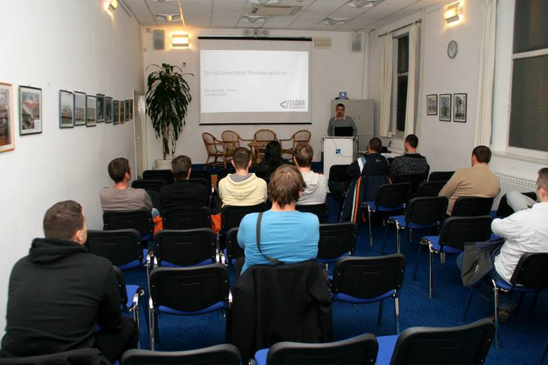 Fotografije sa predavanja o principima razvoja Univerzalnih Windows aplikacija. Organizator predavanja bio je Zadar Developers Hub, a predavač Niko Vrdoljak.