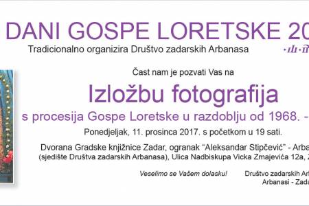 Posljednji događaj ovogodišnjih Dana Gospe Loretske je izložba fotografija "U sjeni Gospe". To je retrospektivna izložba fotografija procesije s kipom Gospe Loretske nošene ulicama Arbanasa. Fotografije su nastajale od 1968. do 2017., dakle punih 45 godina, a autor fotografija je Soni Banić.