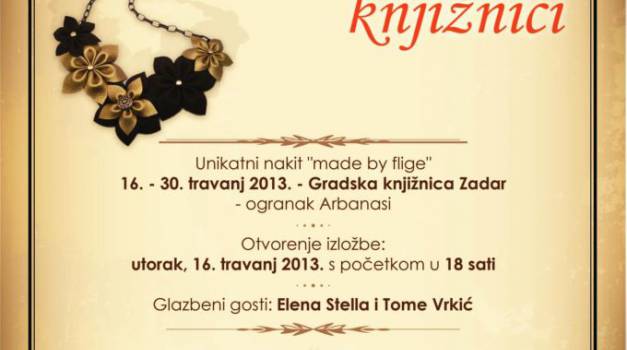 Povodom manifestacije Zadar čita, u Gradskoj knjižnici Zadar, Ogranku Arbanasi otvorena je izložba nakita Knjižice u knjižnici autorice Maje Bujas Flige.