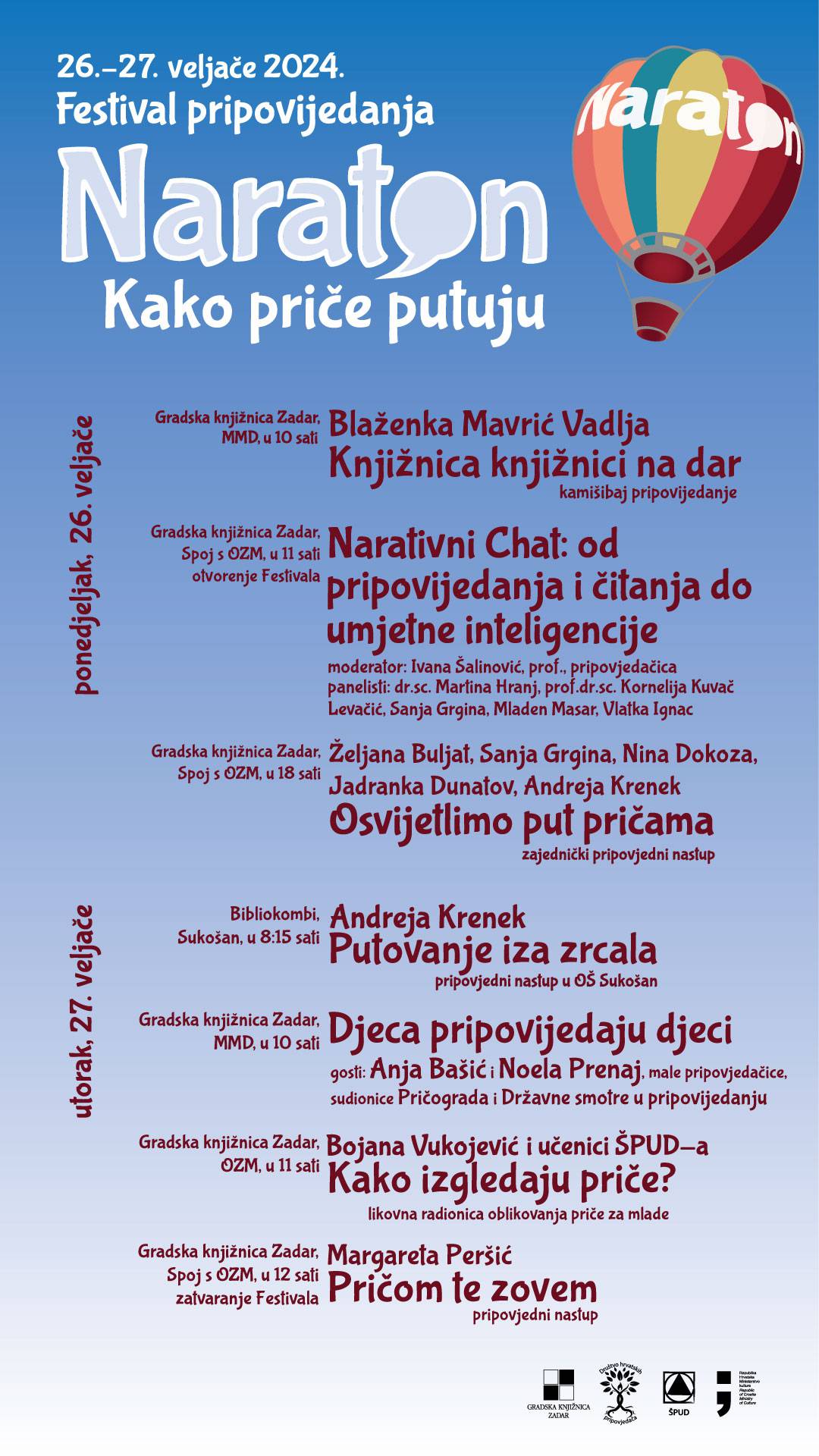 Treće izdanje Naratona - festivala pripovijedanja u organizaciji Gradske knjižnice Zadar održat će se 26. i 27. veljače 2024.