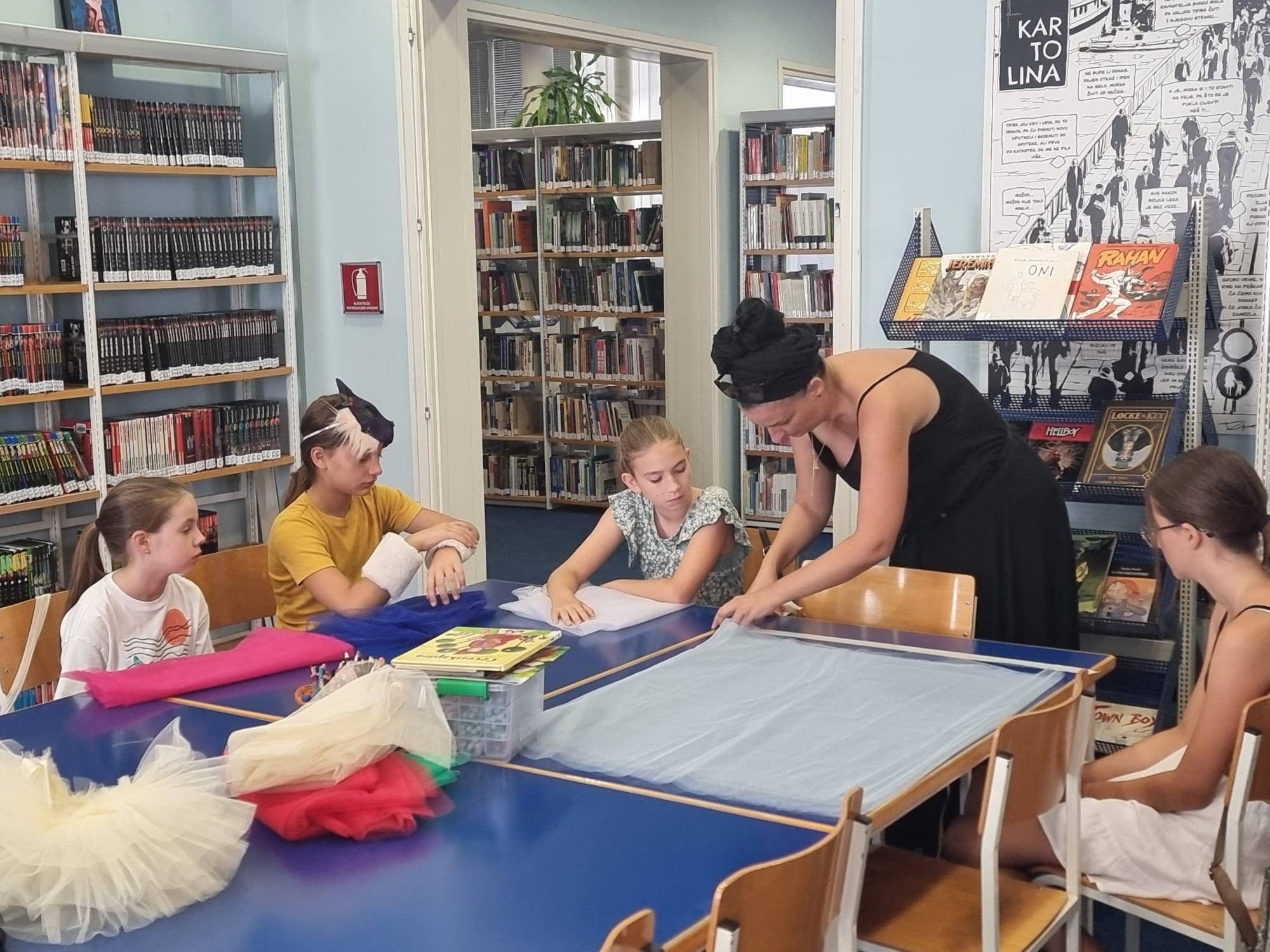 Fotografije s današnje kreativne radionice u sklopu programa Ljeto u Knjižnici 2024. koju je vodila zadarska kazališna kostimografkinja Anita Goreta.