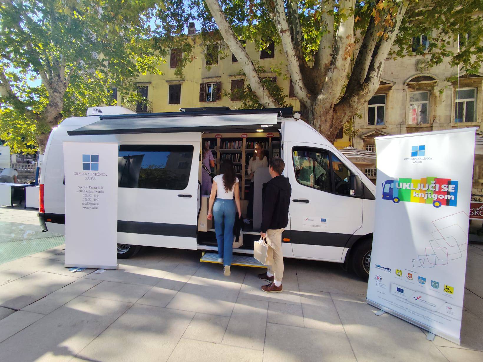 Gradska knjižnica Zadar predstavila je novo vozilo bibliokombi koje obilazi stajališta po Zadarskoj županiji; nabavljen putem projekta Uključi se knjigom financiranog iz Europskog socijalnog fonda. Cilj samog projekta bio je osnažiti osobe s invaliditetom za socijalno uključivanje kroz kulturne sadržaje te razviti i unaprijediti sustav knjižnice na kotačima namijenjen osobama s invaliditetom.