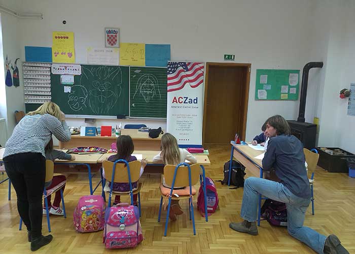 Predavanje i kreativna radionica (Branimir Čakić) o Marvelovim strip junacima za djecu u osnovnoj školi u Bruškoj. Oganizator: Američki kutak i Bibliobusna služba Gradske knjižnice Zadar