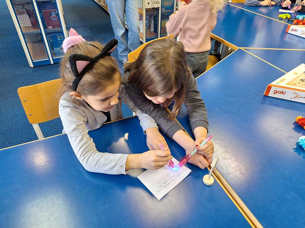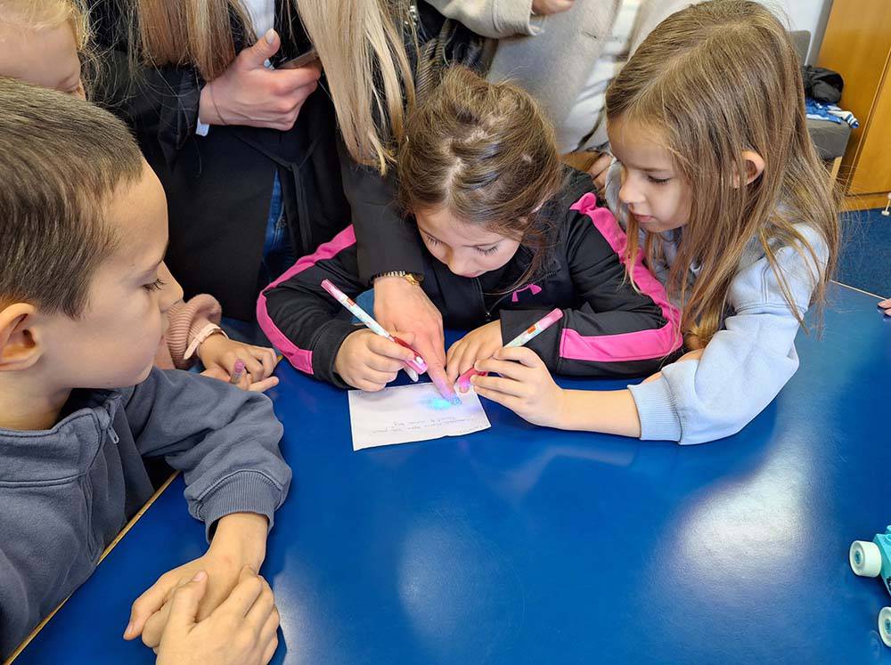 The STEAM workshops "Creative Minds" of the FabLabHr.net Association from Zagreb, for preschool children (4-7 years old), are designed to solve tasks such as connecting constellations, guiding robots, mixing colors, decoding messages and performing simple experiments through play and interactive tasks in thematic adventures, such as "Little Scientific Adventure" and "Secret Space Mission". The participants of today's workshop at the Bili Brig branch of the library are children from the Klokan Kindergarten in Zadar.