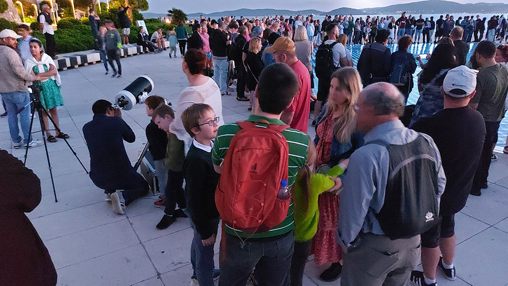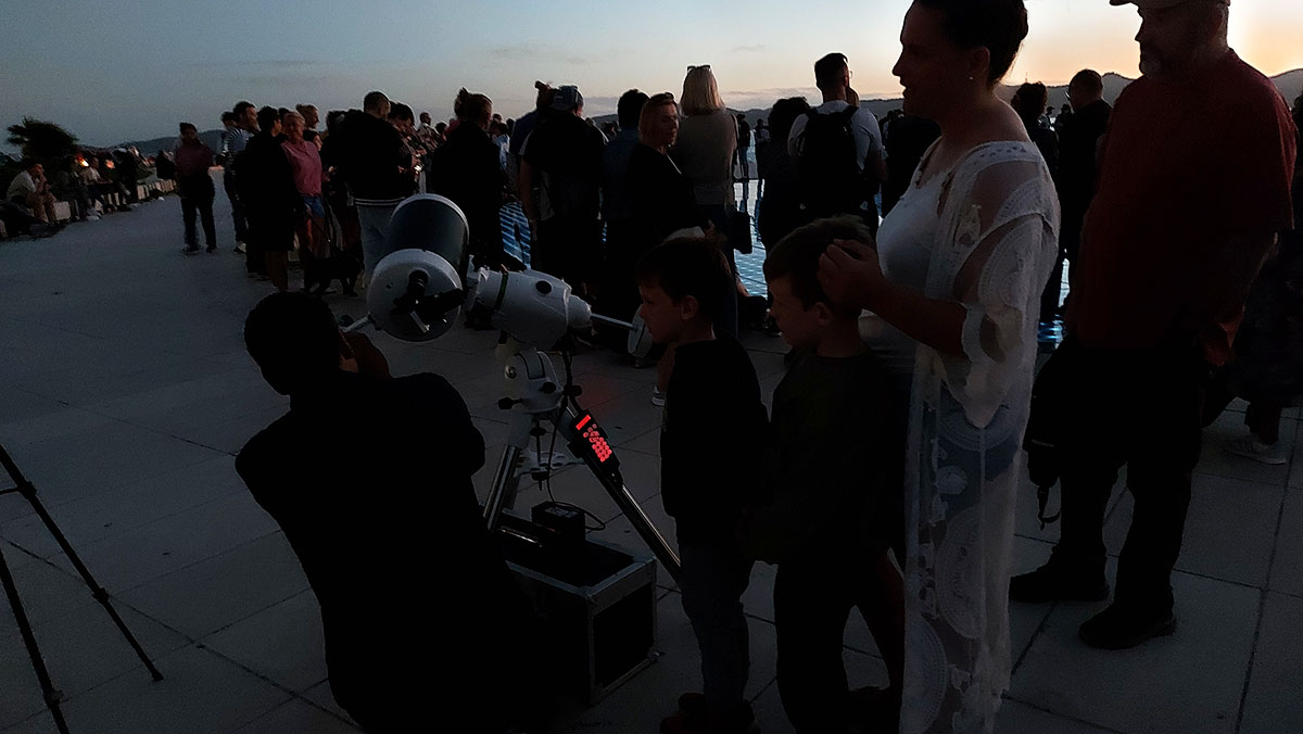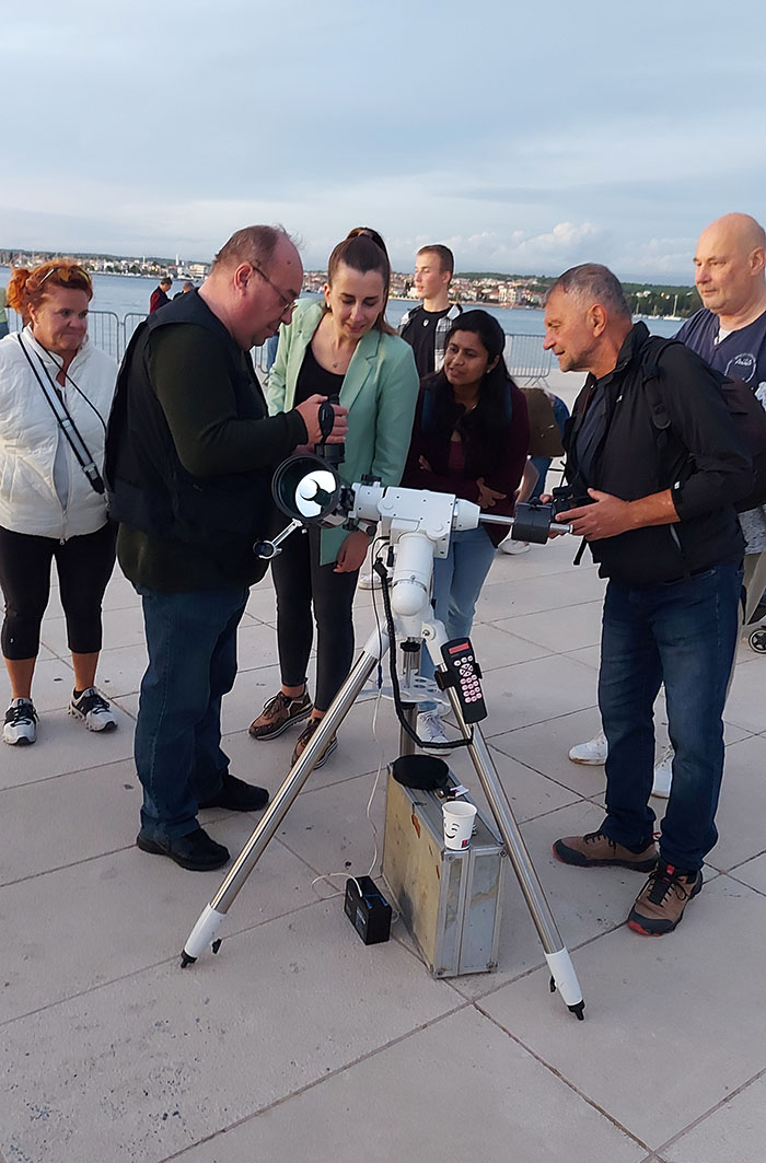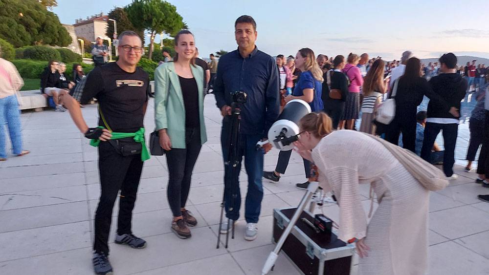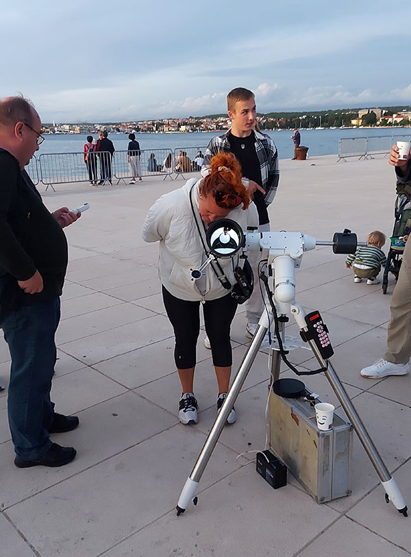 Observing visible objects in the sky through telescopes on the Zadar waterfront during the Sun Greeting in cooperation with the Zadar Astronomical Association and Zadar Library Association.