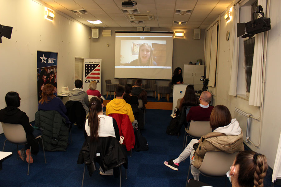 Lecture How to Study in USA? in the American Corner of the Zadar City Library for students by Ana Uglešić and Anne Walker (USA).