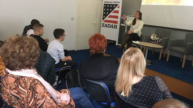 Susret Ellie Kallgren (SAD) i učenika osmih razreda osnovne škole Šimun Kožičić Benja na engleskom jeziku.