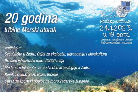 20 godina tribine Morski utorak Gradska knjižnica Zadar obilježit će prigodnim programom koje će se održati 24. siječnja 2022. s početkom u 19:00 sati u Multimedijalnoj dvorani Središnje knjižnice.