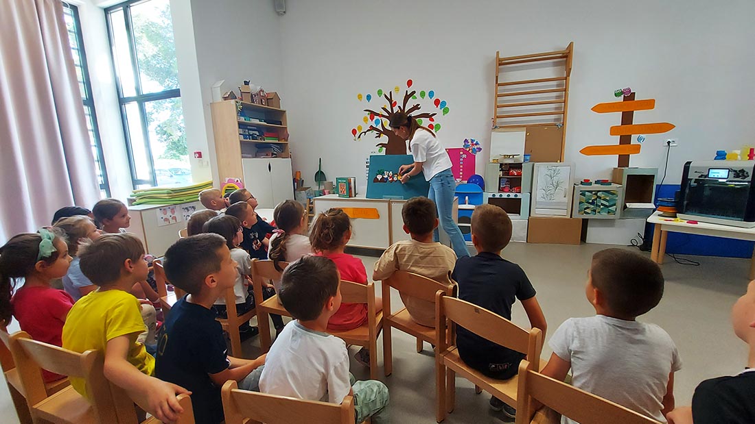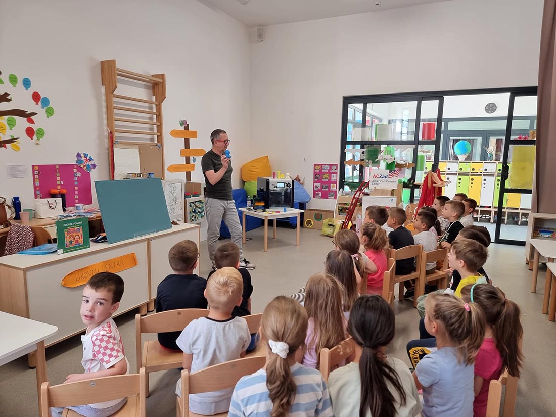 3D printer radionica i pripovijedanje priče na filc ploči (Milko Belevski, Ivana Bobaš) u vrtiću Smajlić u Galovcu. 3D printer workshop and felt board storytelling by Milko Belevski and Ivana Bobaš in kindergarten Smajlić in Galovac. Tagovi: Američki kutakAmerican Corner3D printer3D printer workshopSTEM programworkshopstorytelling