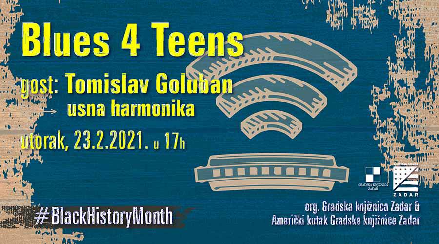 Virtualno predavanje Tomislava Golubana (glazbenik, skladatelj, usna harmonika) o blues glazbi povodom mjeseca Black History Month za učenike osnovnih i srednjih škola. Organizator: Američki kutak Gradske knjižnice Zadar.