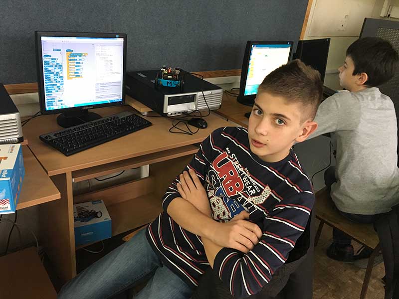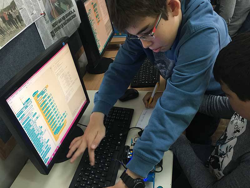 Training robotics by prof. Željko Vidović in elementary school Šime Budinić in Zadar for participants in the STEM educational program GENERATOR (3D printer, 3D scanner, how to use 3D pen and engage in 3D printing and 3D modeling, robotic, electronic) organized by American Corner Zadar. Preparation for competition in “Croatian Makers Liga”