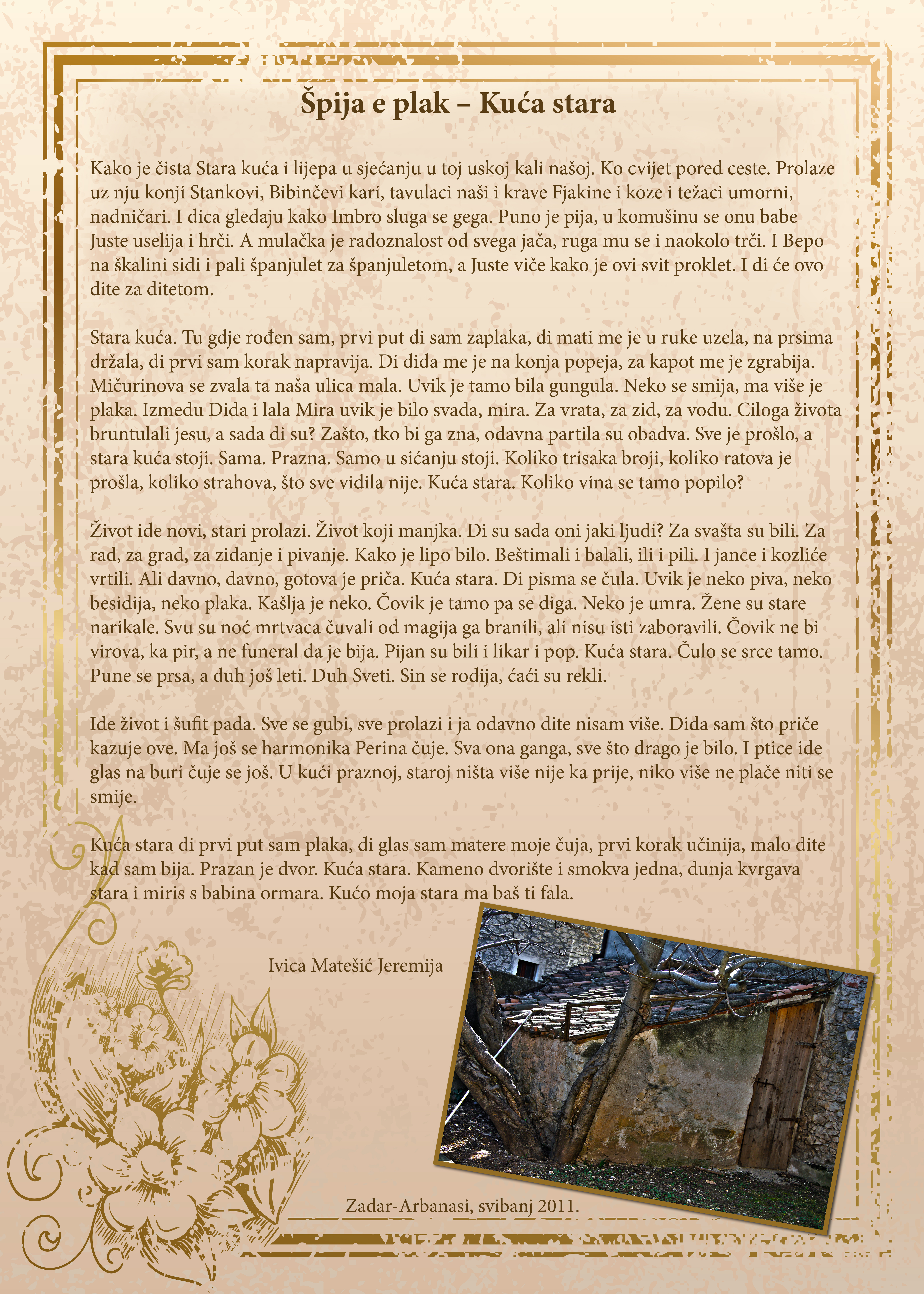 Fotografije se trajno čuvaju u foto - albumu u Zavičajnoj zbirci zadarskih Arbanasa u Gradskoj knjižnici Zadar, Ogranku "Aleksandar Stipčević" - Arbanasi. Izložbu prati brošura koju možete pogledati ovdje.