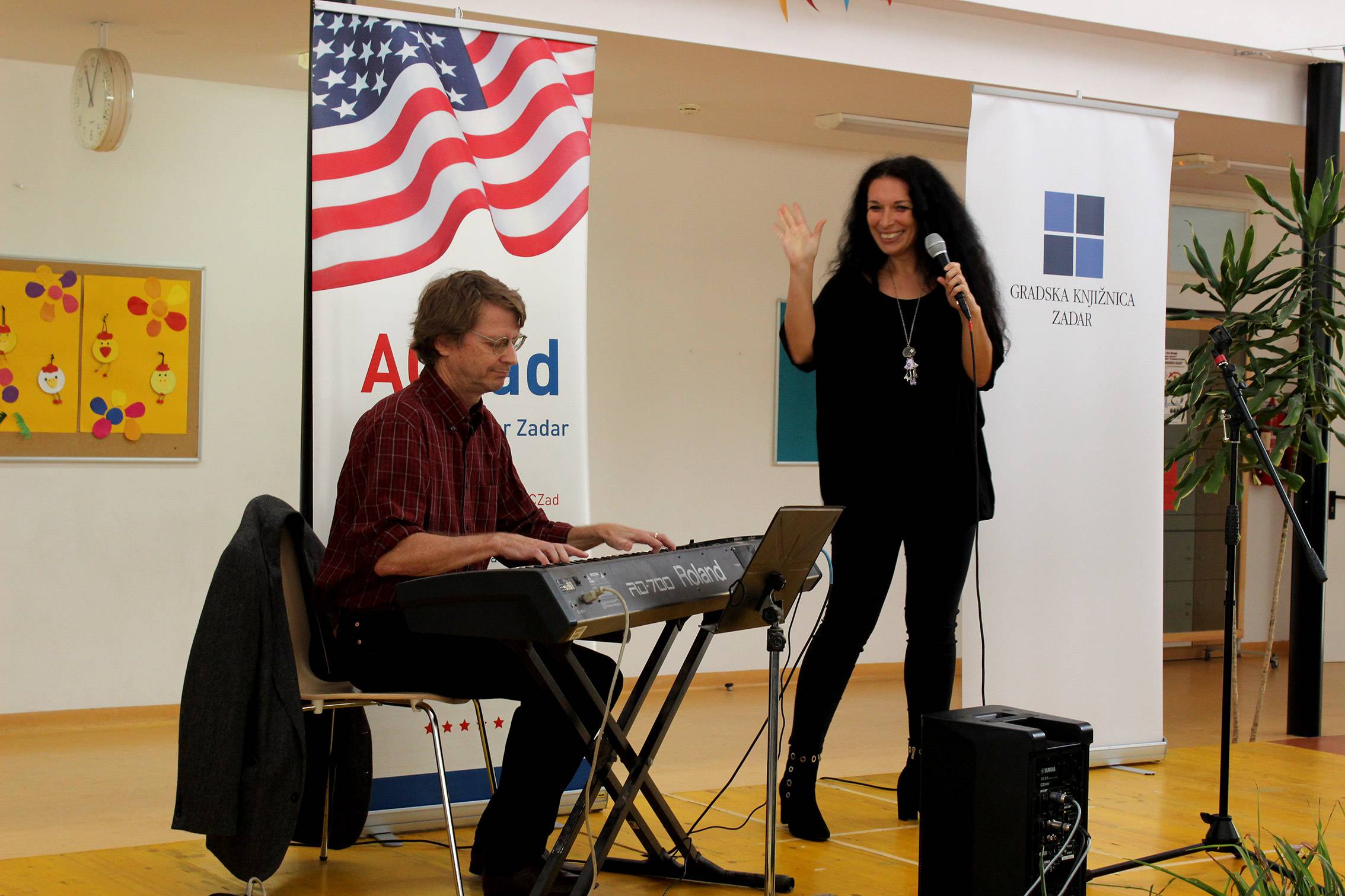 Svečanost Dana Knjižnice održana je u ulaznom dijelu škole Zadarski otoci na Bilom brigu. U glazbenom dijelu nastupila je Lela Kaplowitz uz pratnju klavijaturiste Stewarta T. Schultza, zahvaljujući donaciji Američkog kutka Gradske knjižnice Zadar i Veleposlanstva SAD-a. Još jednom zahvaljujemo svima koji su došli i uveličali ovu svečanost, a posebno još jednom čestitamo svim najčitateljima.