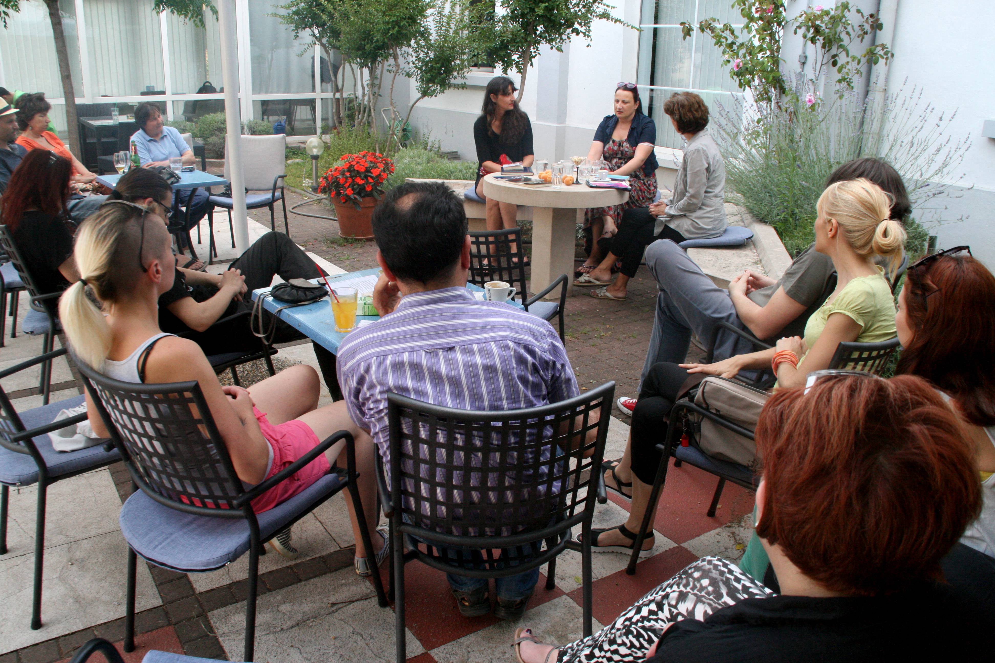 Fotogalerija s predstavljanja knjige Kauč na trgu autorice Dorte Jagić u organizaciji Književne udruge ZaPis. Ugodno vrijeme i ambijent dvorišta Knjižnice i Li.bara uvjetovali su preseljenje predstavljanja iz dvorane na otvoreno.