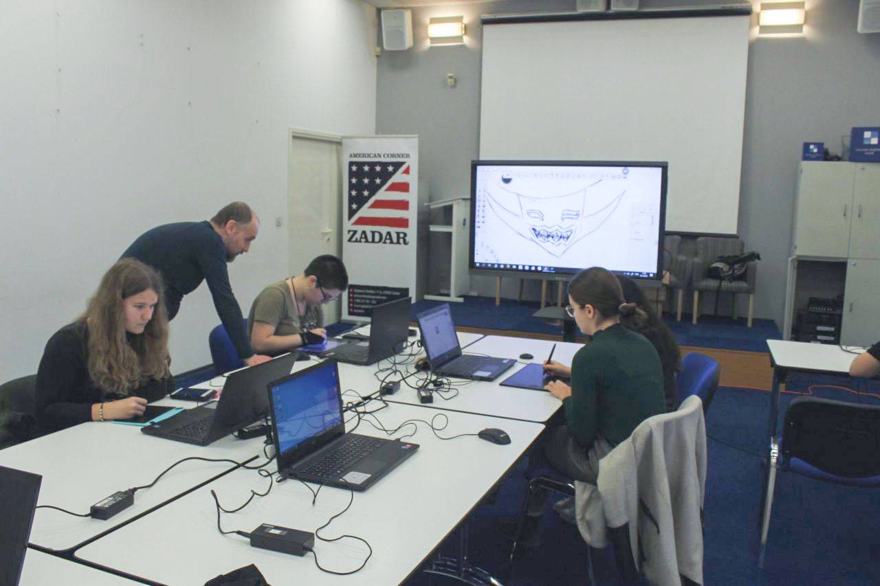 Nekoliko fotografija s prve radionice digitalnog slikanja - Duktus. Radionicu vodi profesor Boris Lukić.