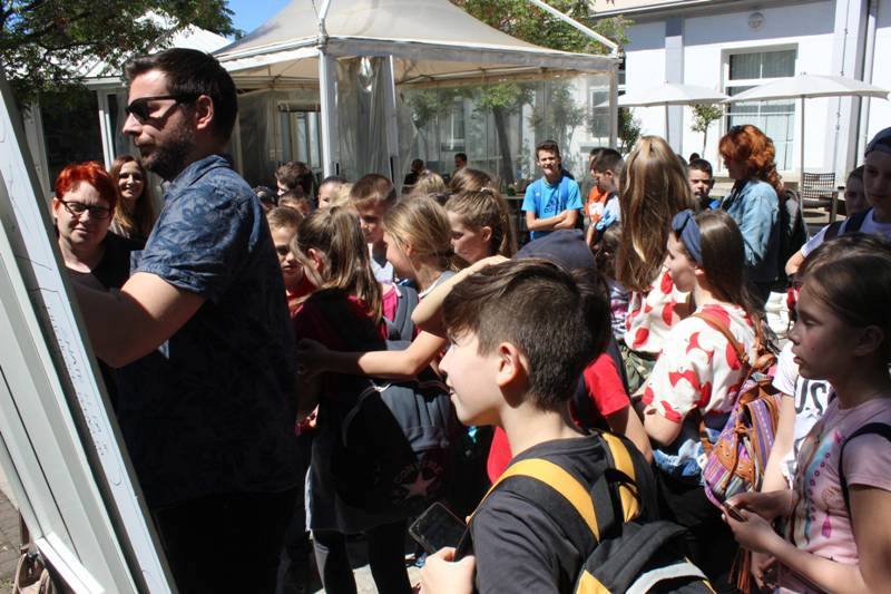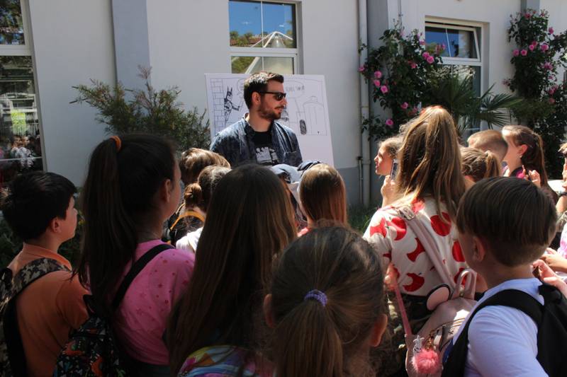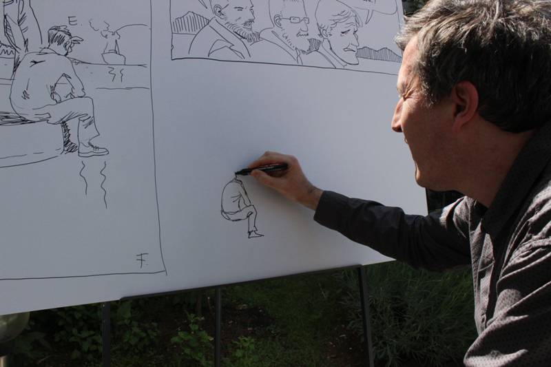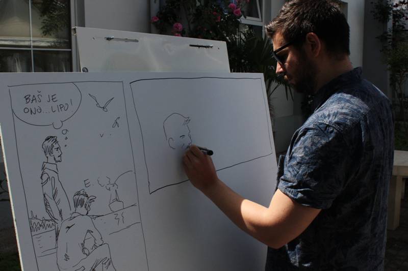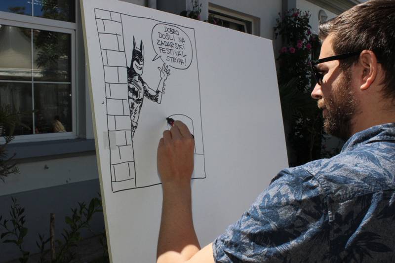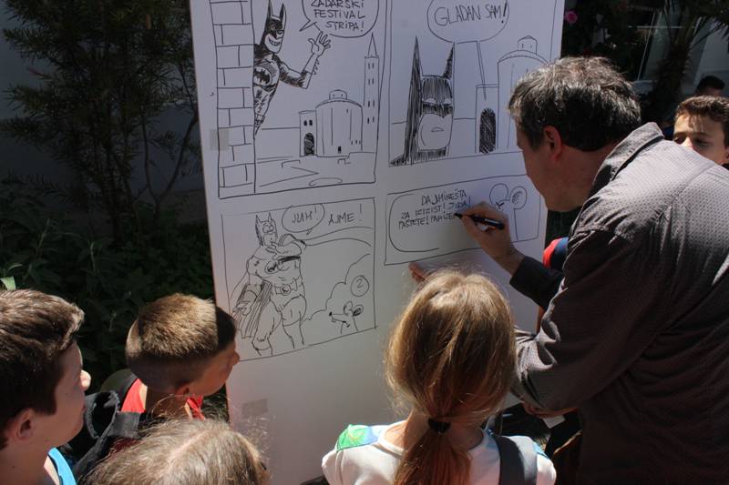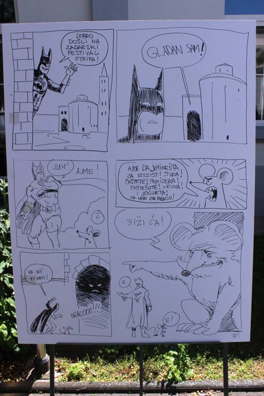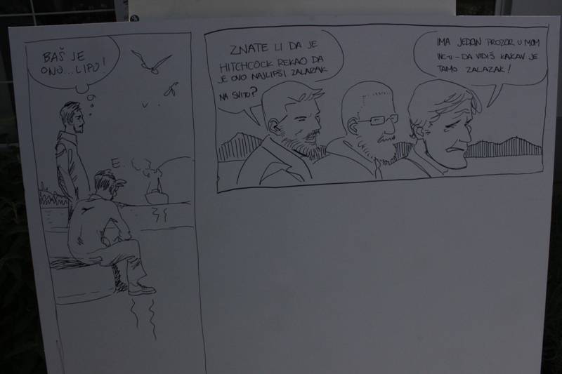 U sklopu Festivala stripa po prvi smo put imali i javno crtanje U dvorištu Knjižnice postavili smo veliku bijelu površinu na kojoj su naši gosti ad hoc izmislili priču i strip: prvi je kadar nacrtao Frano Petruša, zatim je nastavio Ive Svorcina, a priču je zaključio Tihomir Tikulin.