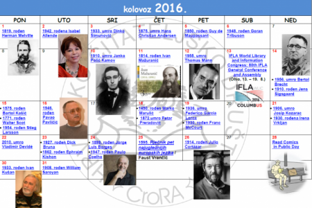 Hrvatsko čitateljsko društvo svaki mjesec izdaje kalendar sa važnim datumima iz domaće i svjetske književnosti, obljetnicama i događajima. Pogledajte zanimljivosti u mjesecu kolovozu, pronađite inspiraciju za čitanje ili jednostavno naučite nešto novo.