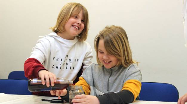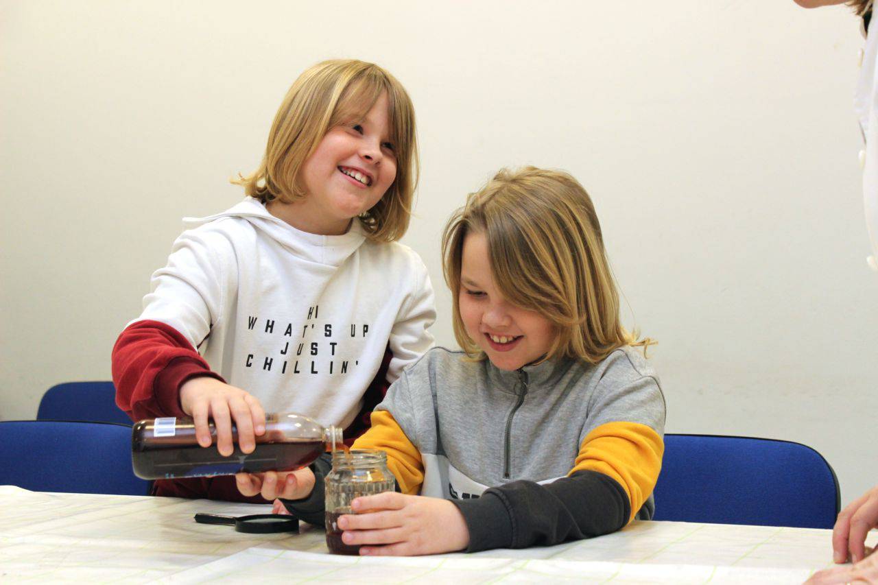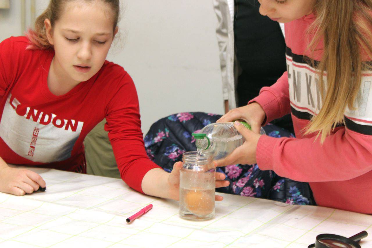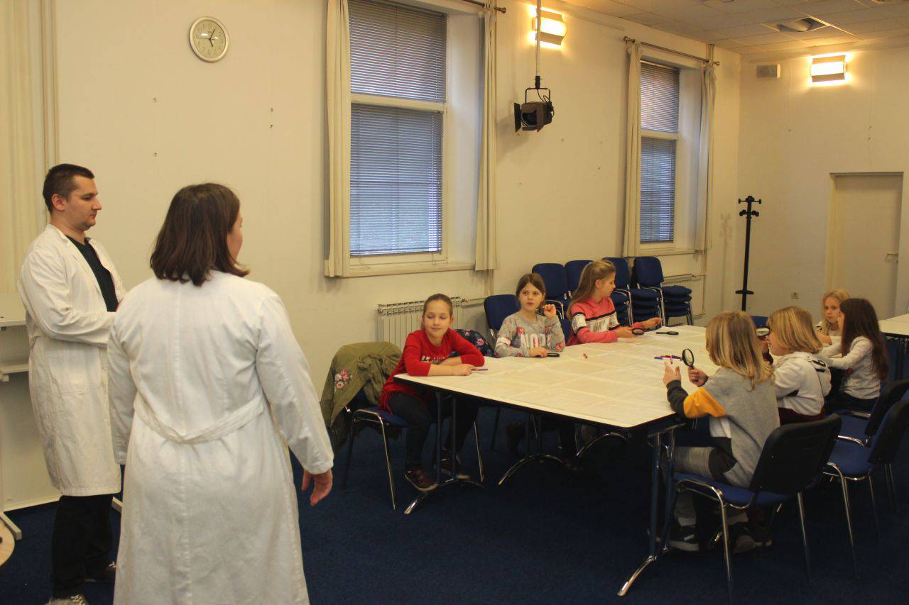 Nekoliko fotografija s radionice Mali kemičari koju su vodili prof. Andreja Kakša i prof. Matija Kakša.