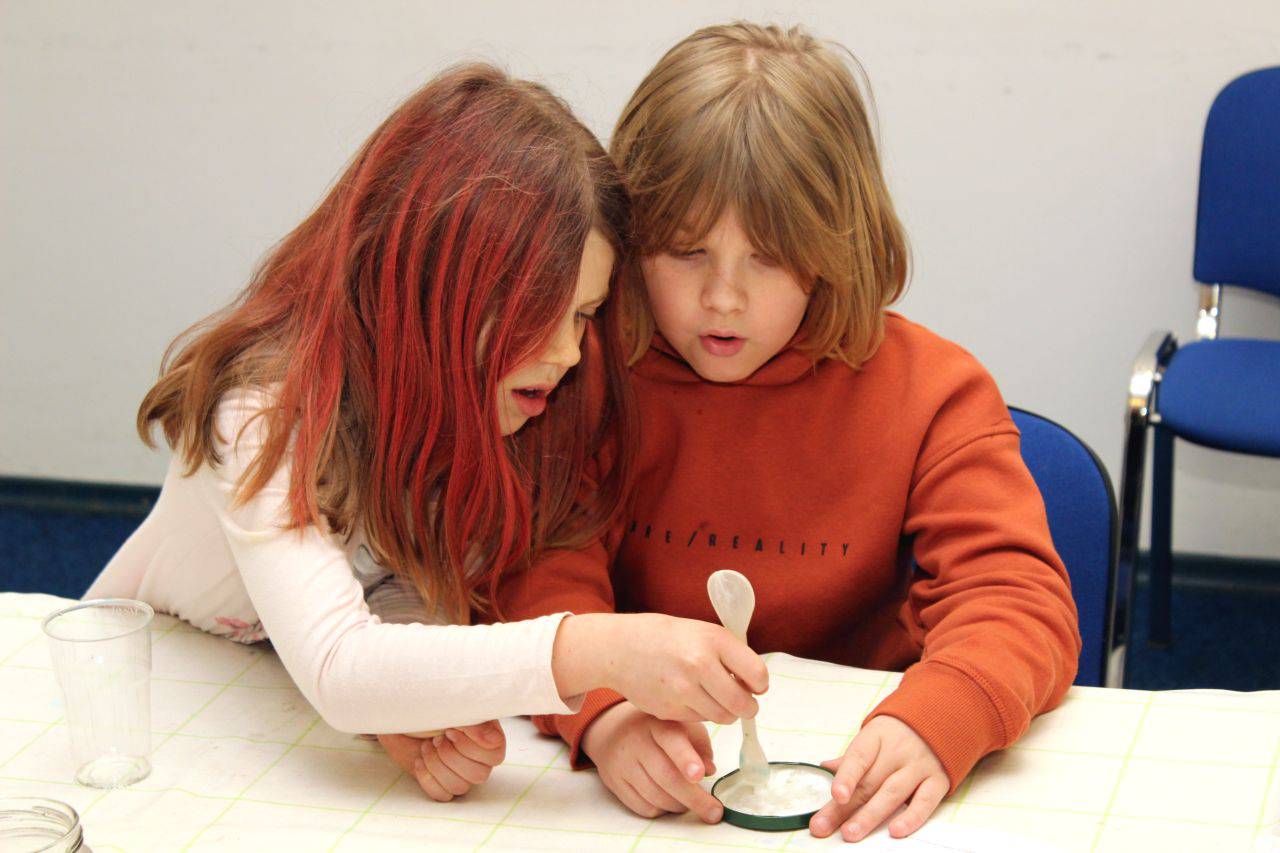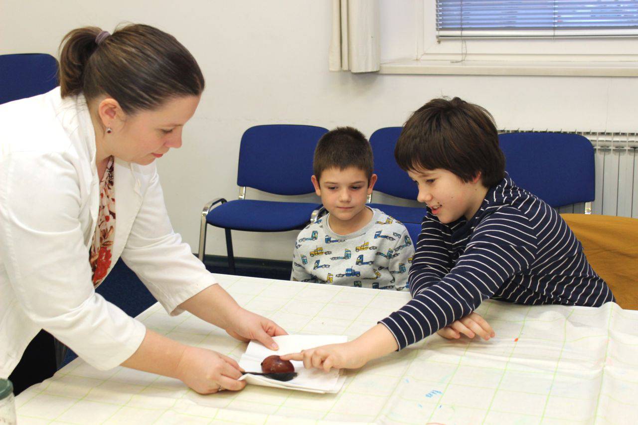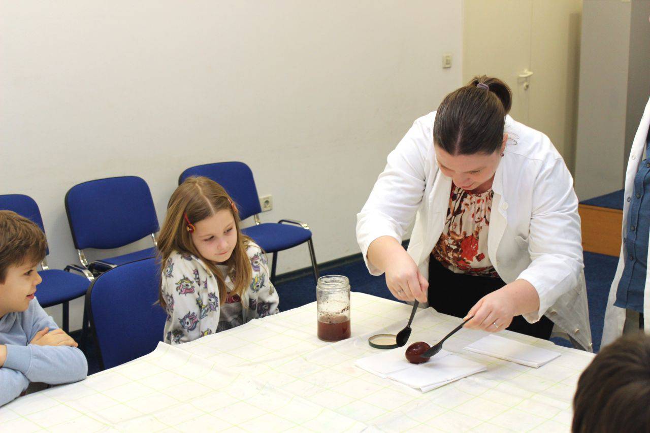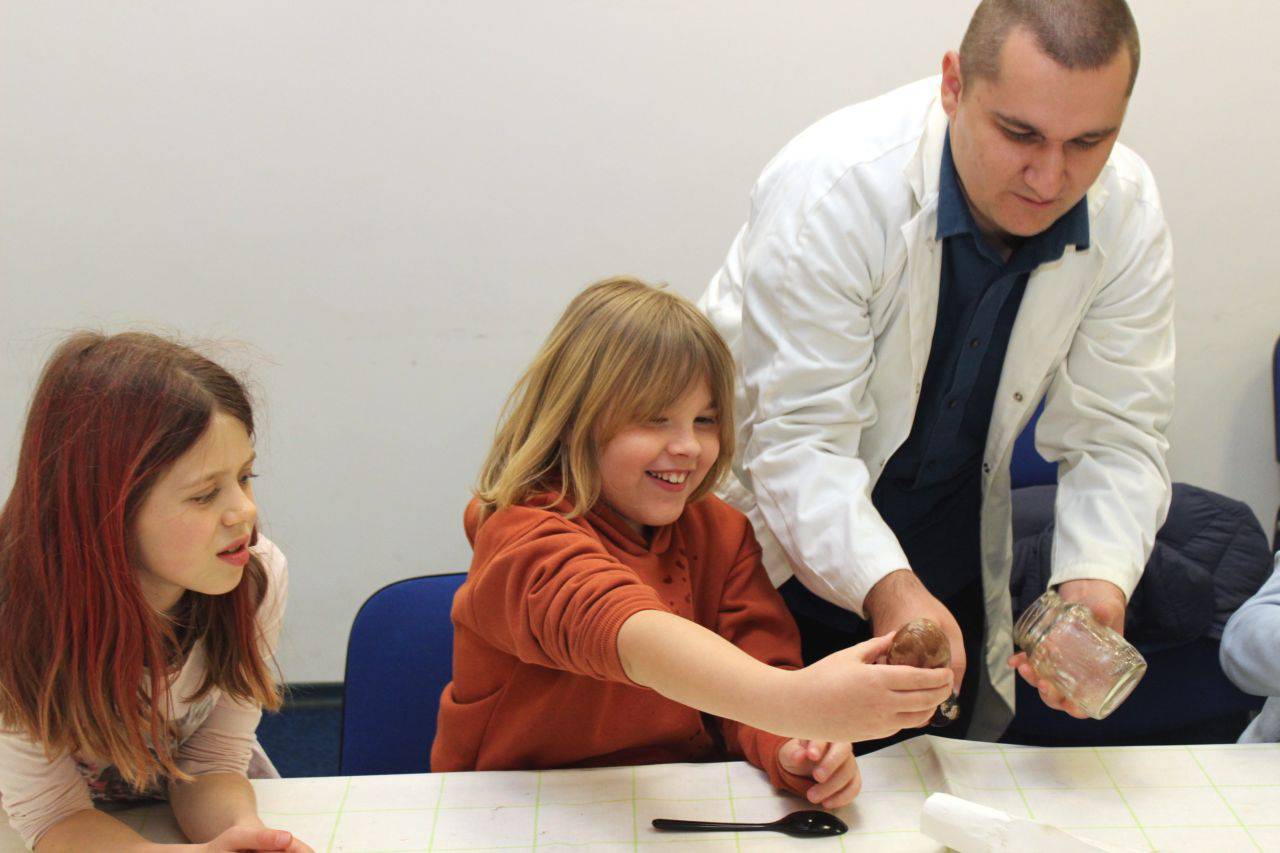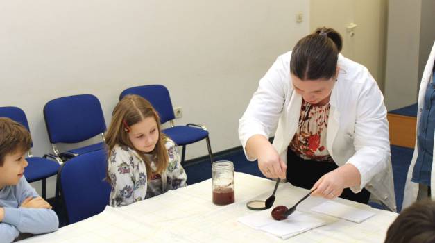 Nekoliko fotografija s radionice Mali kemičari koju su vodili prof. Andreja Kakša i prof. Matija Kakša.