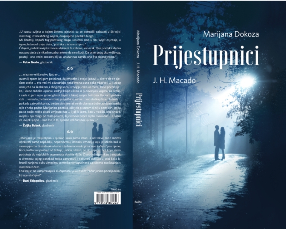 Predstavljanje zbirke poezije "Prijestupnici" autora Marijane Dokoza i J.H.Macada, u izdanju ZaPisa i romana "Njegova žena", autorice Marijane Dokoza, u izdanju Despot Infinitusa i uz potporu Zadarske županije. Recenzenti spomenute zbirke pjesama su hrvatski glazbenici Petar Grašo, Đani Stipaničev i Željko Bebek. U predstavljanju će sudjelovati i J. H. Macado, Iva Pejković i Sandra Marelja te glazbena pratnja na gitari Goran Kovačević.