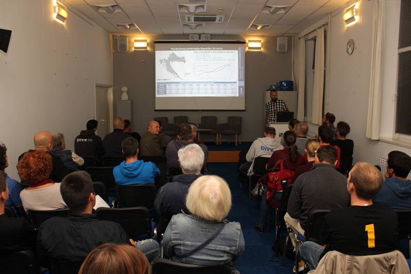 Fotografije s prvog Morskog utorka nakon ljetne stanke. U goste su nam došli mag. ing. Iva Žužul i mag. ing. Igor Talijančić i govorili o istraživanju populacije podlanice u Jadranu. Ona je kao jedna od komercijalno najvažnijih vrsta pod velikim ribolovnim pritiskom, no ujedno je uz brancina najznačajnija vrsta u akvakulturi. Zahvaljujući prebjezima iz uzgoja, klimatološkim promjenama i drugim faktorima, populacija podlanice u divljini raste.
