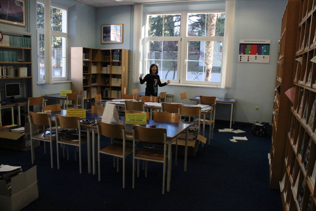 Fotografije zadnjeg dana provedbe revizije na Odjelu za odrasle, Medijateci, Čitaonici tiska i Studijskoj čitaonici.