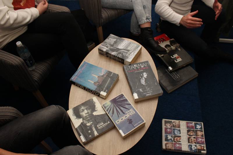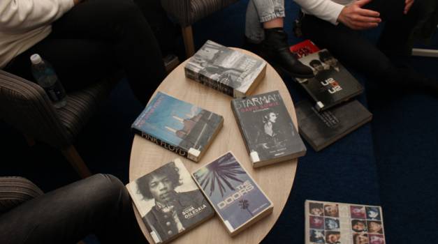 Nekoliko fotografija s večerašnjeg predavanja na kojemu je kolega Branimir Čakić u sklopu manifestacije Mjesec hrvatske knjige predstavio biografije rock sastava i glazbenika.