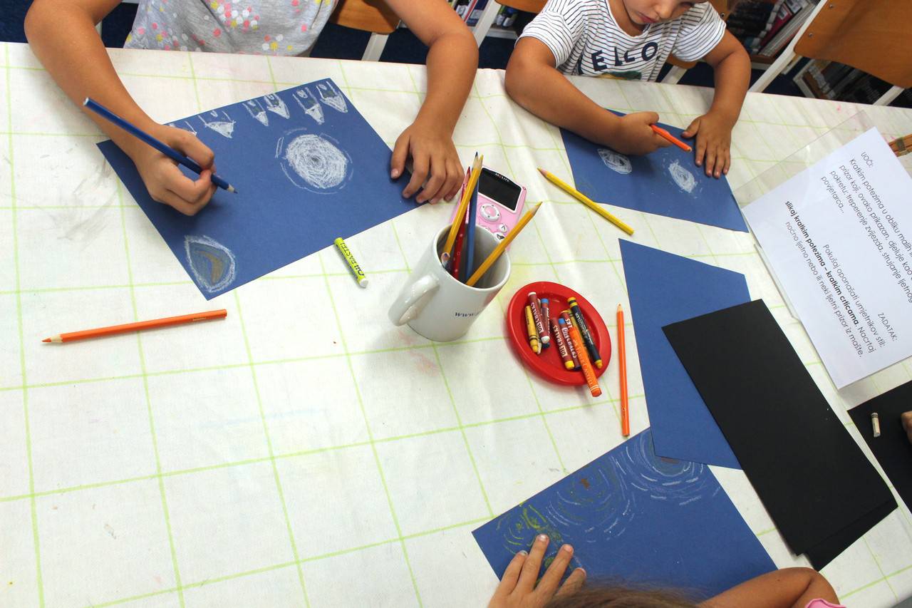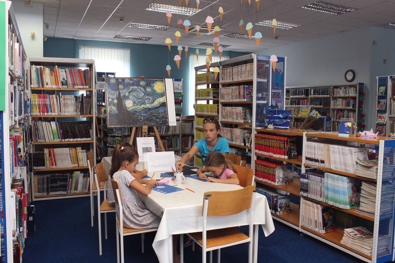 Kroz ciklus radionica "Slikari ljeta" tijekom srpnja na Dječjem odjelu smo predstavili pet slika različitih umjetnika kojima je zajednička zanesenost motivima ljeta, mora i prirode. Dva hrvatska i po jedan talijanski, nizozemski i francuski umjetnik odabrani su iz različitih vremenskih razdoblja kako bi nam predstavili različite pravce u umjetnosti. Radionice su osmišljene u suradnji s profesoricom Bojanom Vukojević iz Škole primijenjene umjetnosti i dizajna. Posljednji tjedan srpnja ispraćamo inspirirani slavnom van Goghovom slikom "Zvjezdana noć" iz 1889. godine.