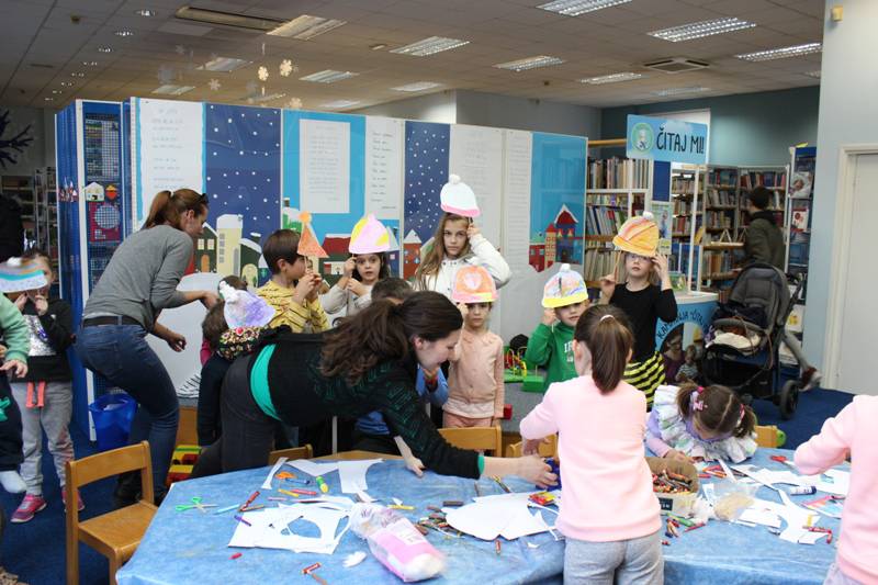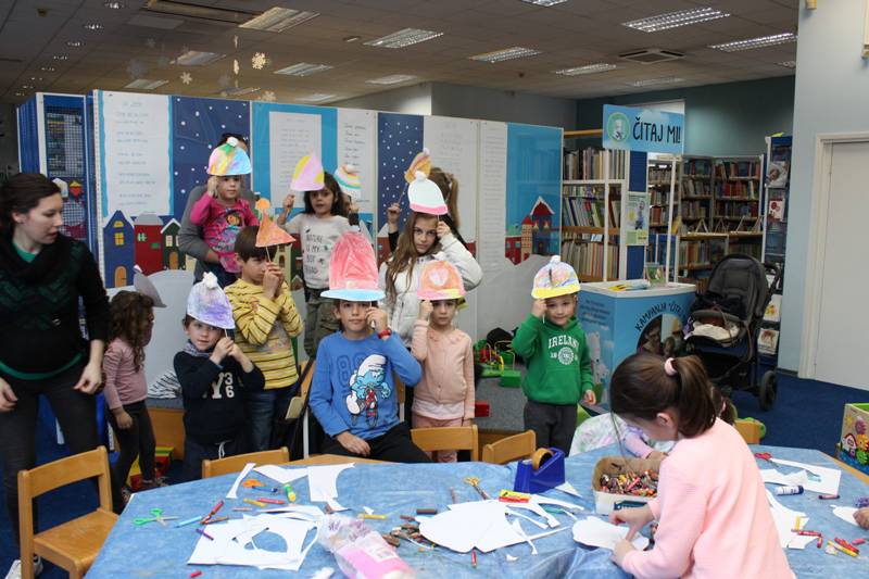 Ove vesele kape nastale su nakon čitanja slikovnice "Murko na snijegu". Na našoj redovnoj radionici "Utorkom u 4" uvijek je zabavno, i tako već 19 godina zaredom.