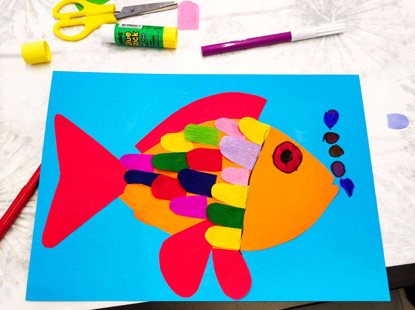 Povodom Svjetskog dana ekologije - zaštite okoliša 08. 06. 2022., redovita radionica subotom u 11 sati bila je posvećena upravo tom danu. Djeci je pročitana slikovnica Alba-riba koja živi sto godina. Ova prekrasno ilustrirana priča podučava djecu zašto je važno ne zagađivati naše more i okoliš te kako možemo popraviti štetu koju smo već počinili. Nakon priče djeca su izrađivala ribice od kolaža i krep papira.