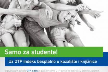 Studenti koji u razdoblju od 04. rujna do 31. listopada 2017. ugovore paket OTP Indeks na poklon dobivaju studentsku pretplatu Hrvatskog narodnog kazališta Zadar te članske iskaznice Gradske knjižnice Zadar i Znanstvene knjižnice Zadar.