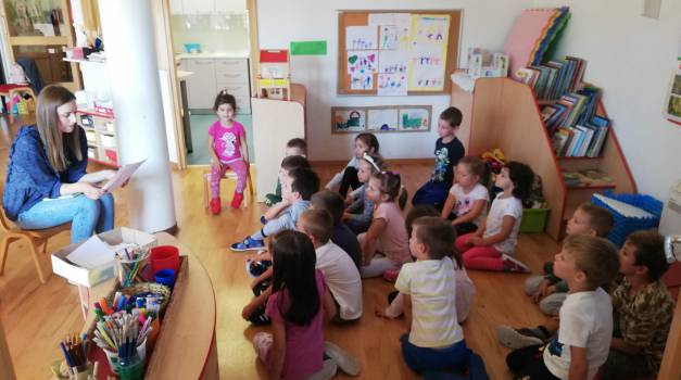 Knjižničarke Gradske knjižnice Zadar u posjeti DV Sunce ☀️ PO Kožino gdje čitaju priče vrtićkoj skupini. Program se provodi u sklopu poticanja čitanja "Mozak treba vježbati. Najbolje čitanjem", a povodom obilježavanja 70 godina samostalnog djelovanja Gradske knjižnice Zadar.
