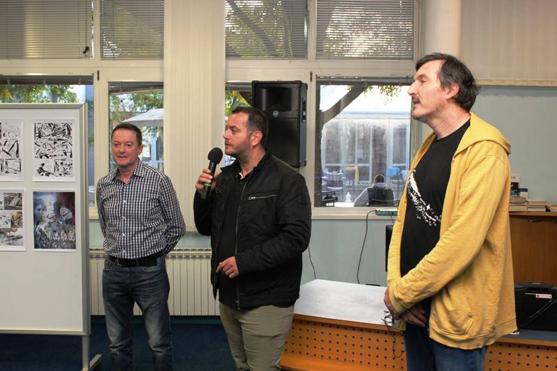 Fotografije s otvorenja 3. Festivala stripa Gradske knjižnice Zadar, Zbirka 74. Obratili su nam se Dado Raić, vlasnik izdavačke kuće Libellus i Tihomir Tikulin Tico, naš poznati strip autor i crtač.