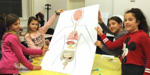 Fotografije s prvog dijela radionice Mali biolozi pod temom ,,ljudsko tijelo". Radionicu je vodila prof. Anita Mustać.