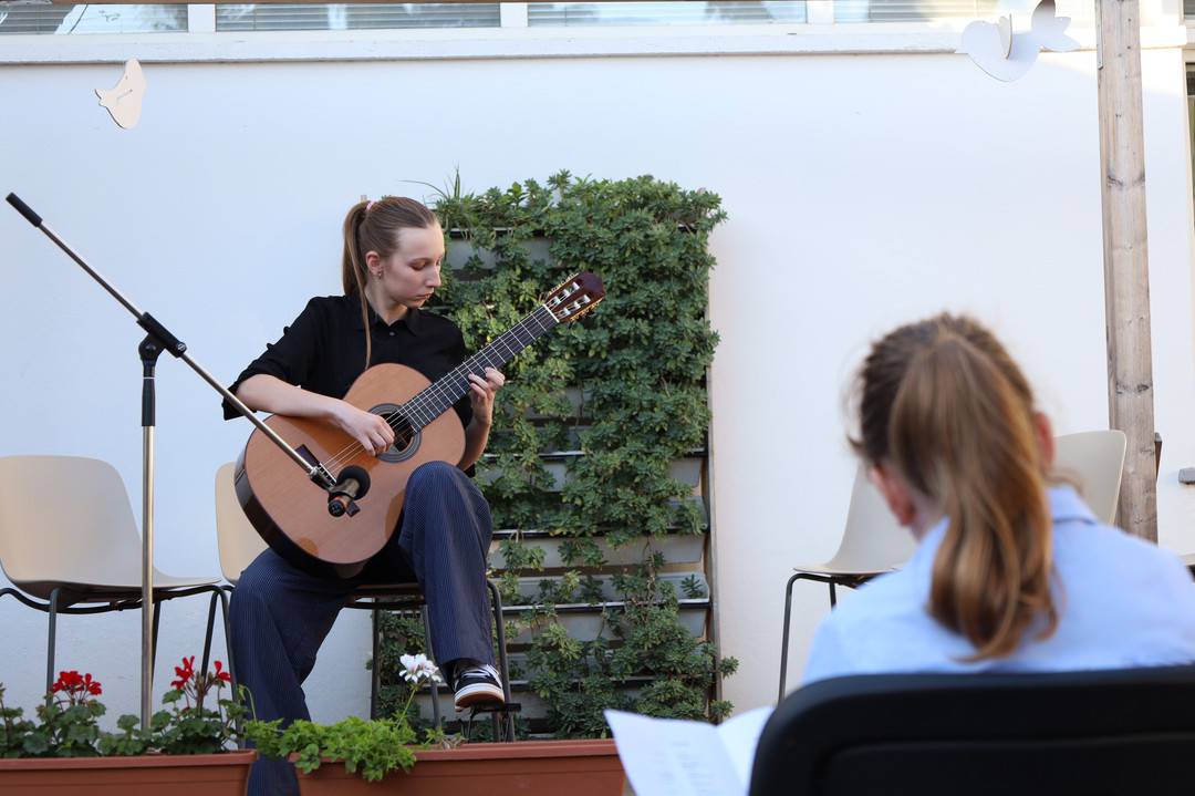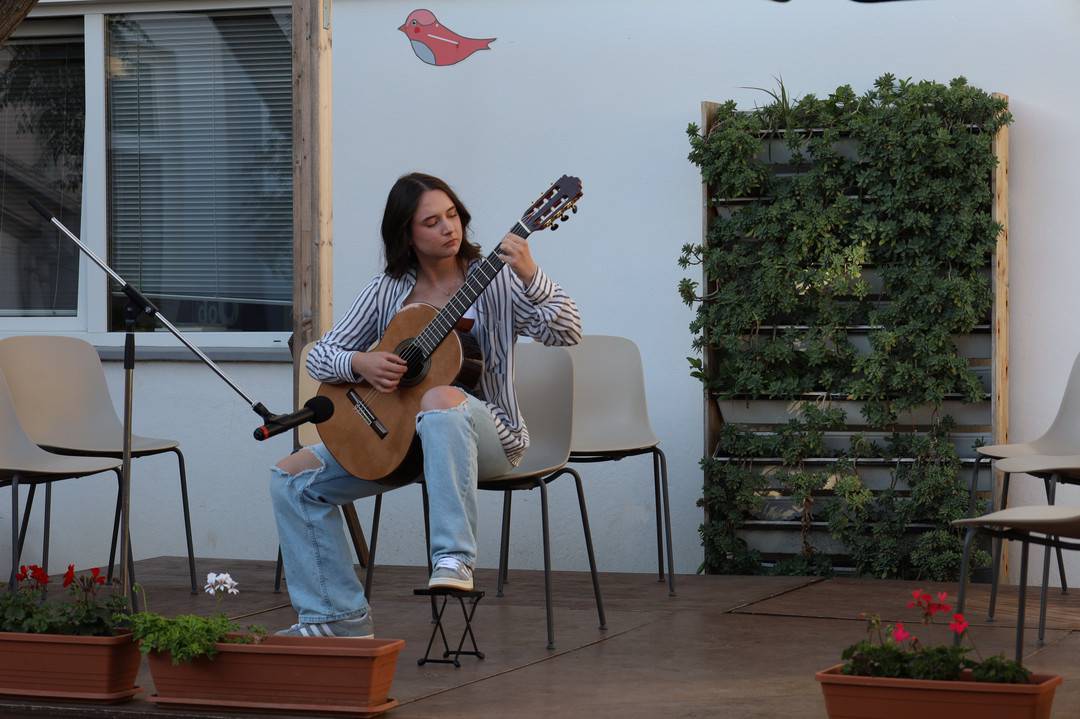 Glazbena škola Blagoje Bersa Zadar organizirala je koncert učenika gitare u dvorištu Gradske knjižnice Zadar. Srijeda, Svibanj 22, 2024 - 19:45Kategorija: KoncertLokacija: Dvorište Tagovi: Fotogalerijekoncert