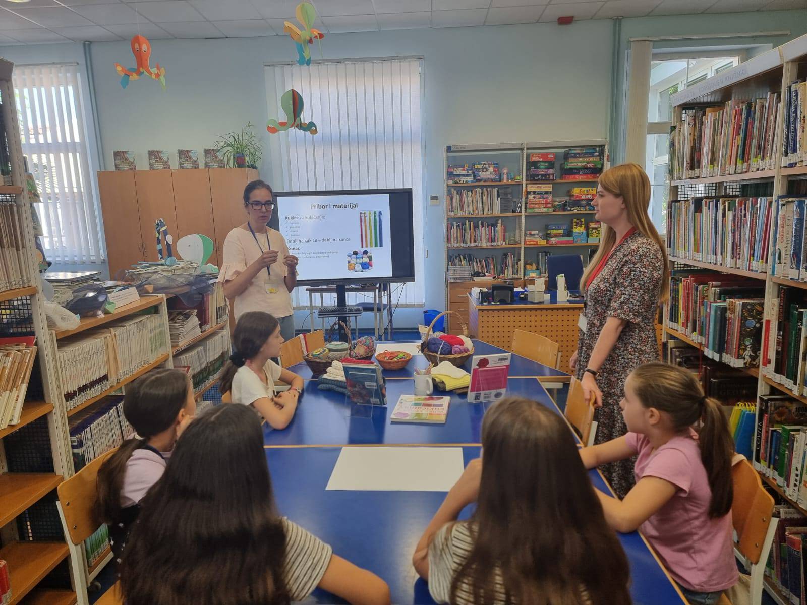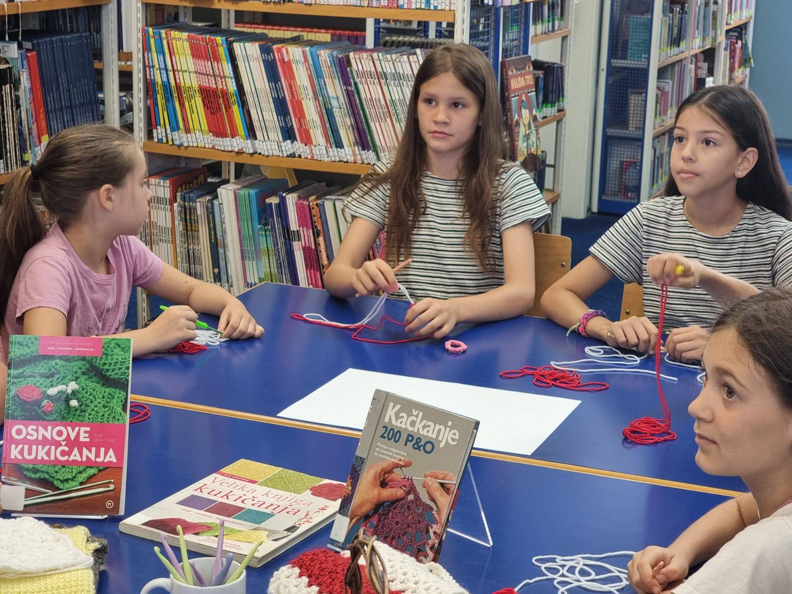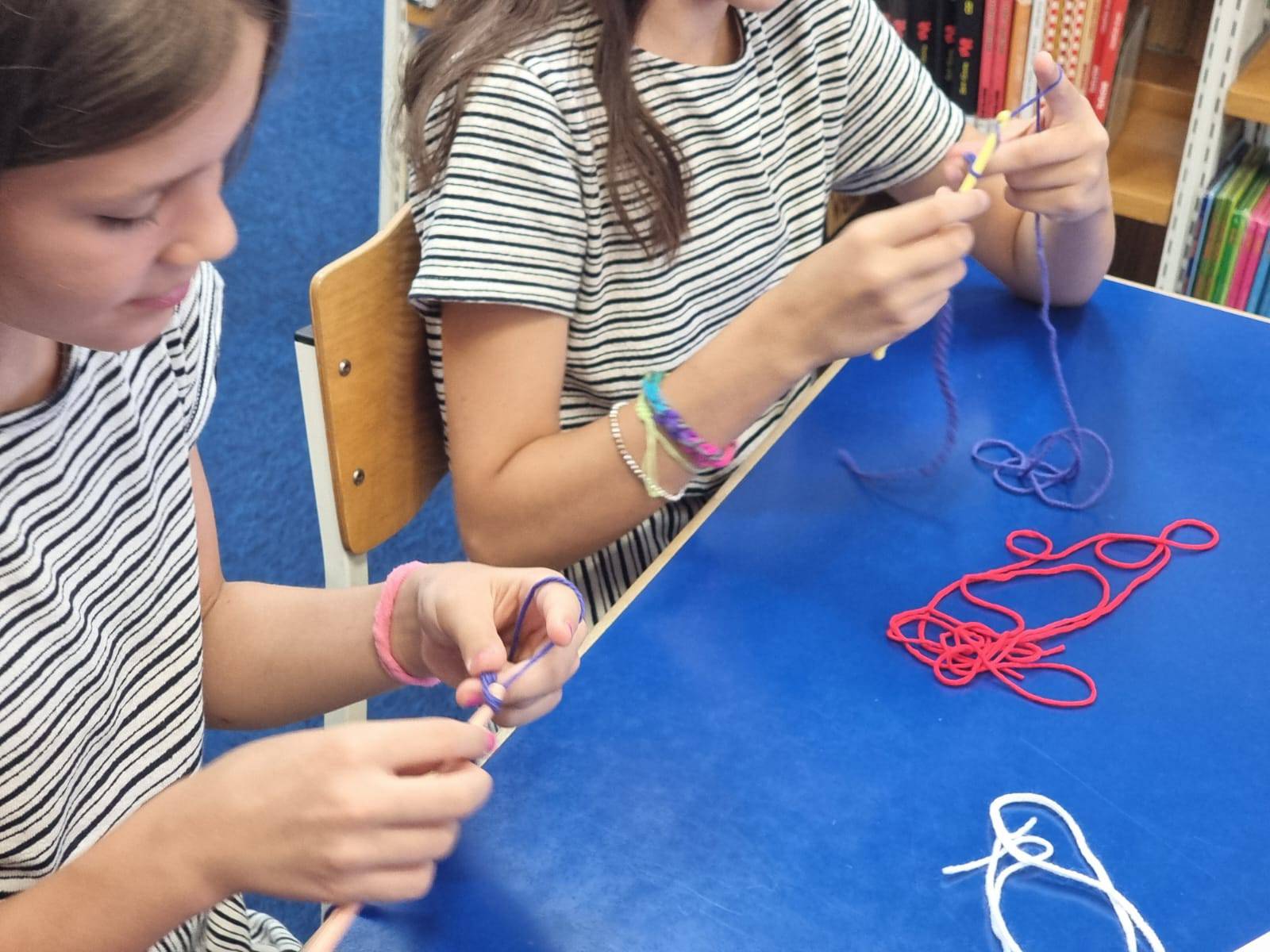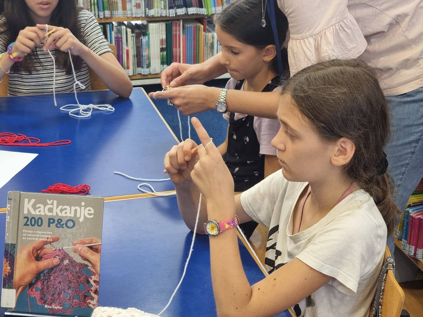 Nekoliko fotografija s radionice za osnovnoškolce - Nauči osnove kukičanja koju vodi Martina Dorčić.
