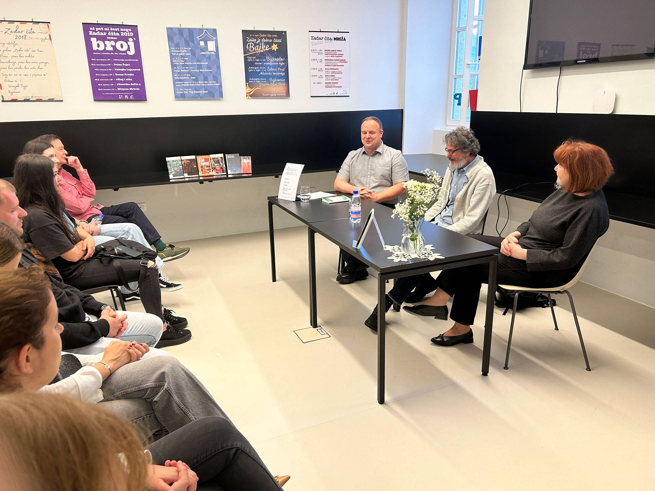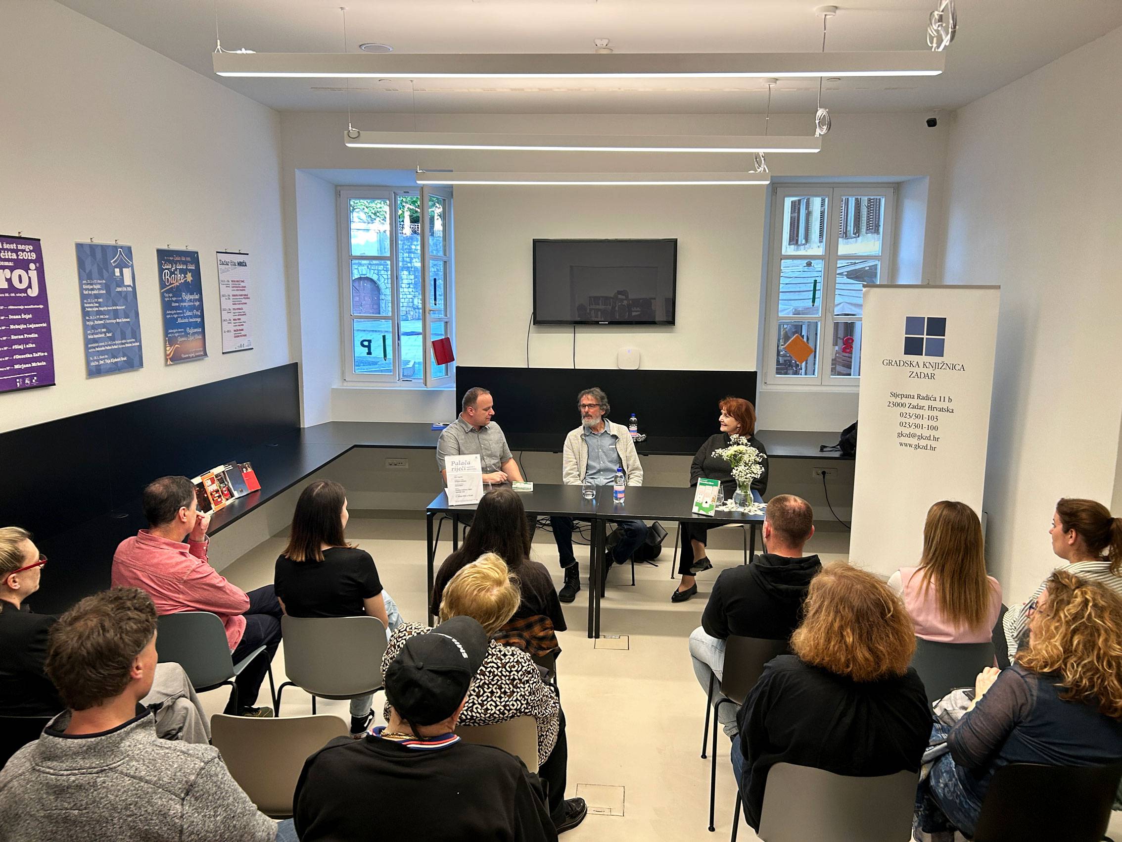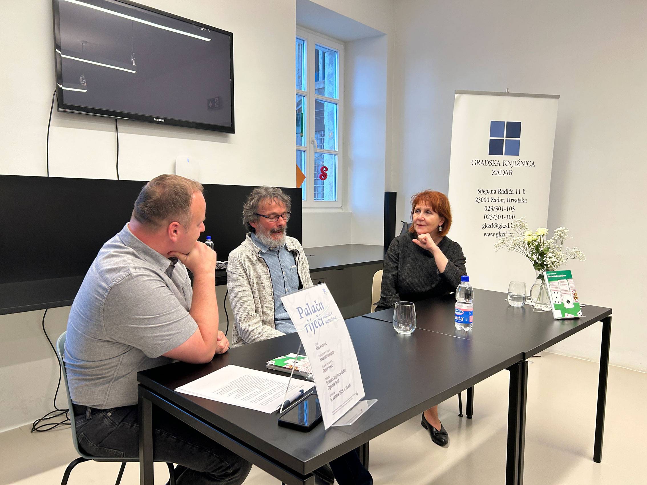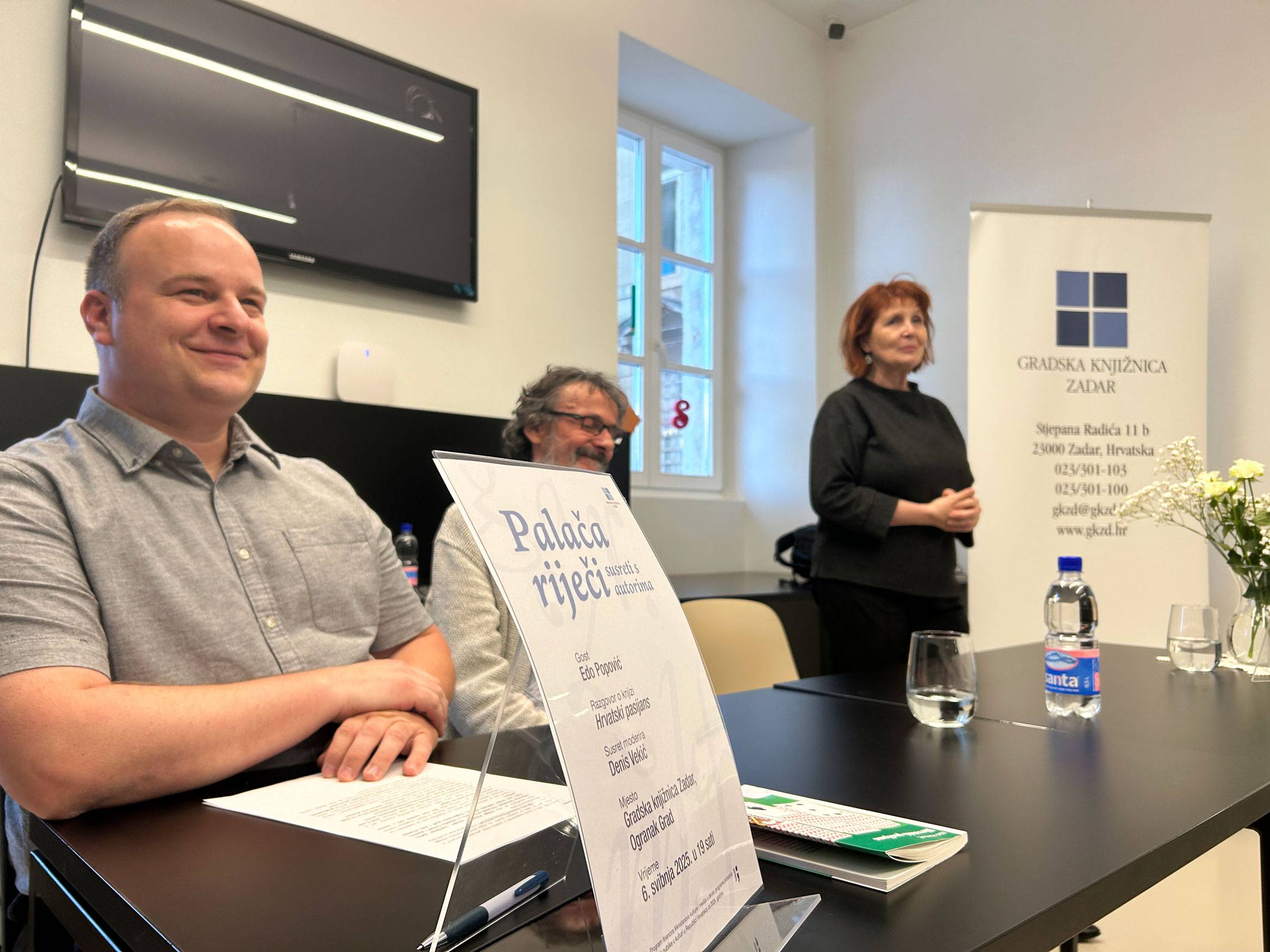 Na trećem nastavku programa "Palača riječi" u našem Ogranku Grad gostovao je Edo Popović. U društvu moderatora Denisa Vekića i ravnateljice Doroteje Kamber Kontić, Popović je predstavio knjigu Hrvatski pasijans. Program "Palača riječi" financira Ministarstvo kulture i medija Republike Hrvatske kao program poticanja razvoja publike u kulturi za 2025.