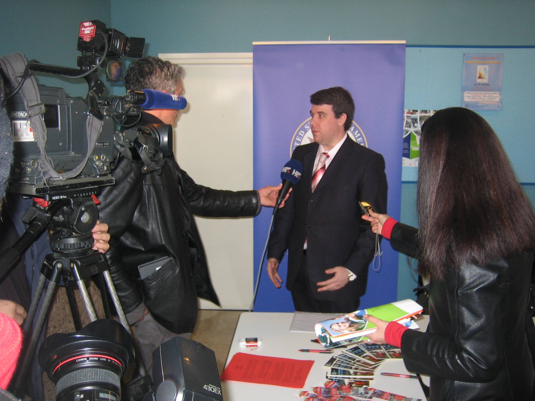 Vice Consul Todd Bullock giving an interview for HTV and Vecernji list before a presentation on education, travel and work opportunities in the U.S. and the visa issuing process at the American Corner Zadar on March 10, 2008